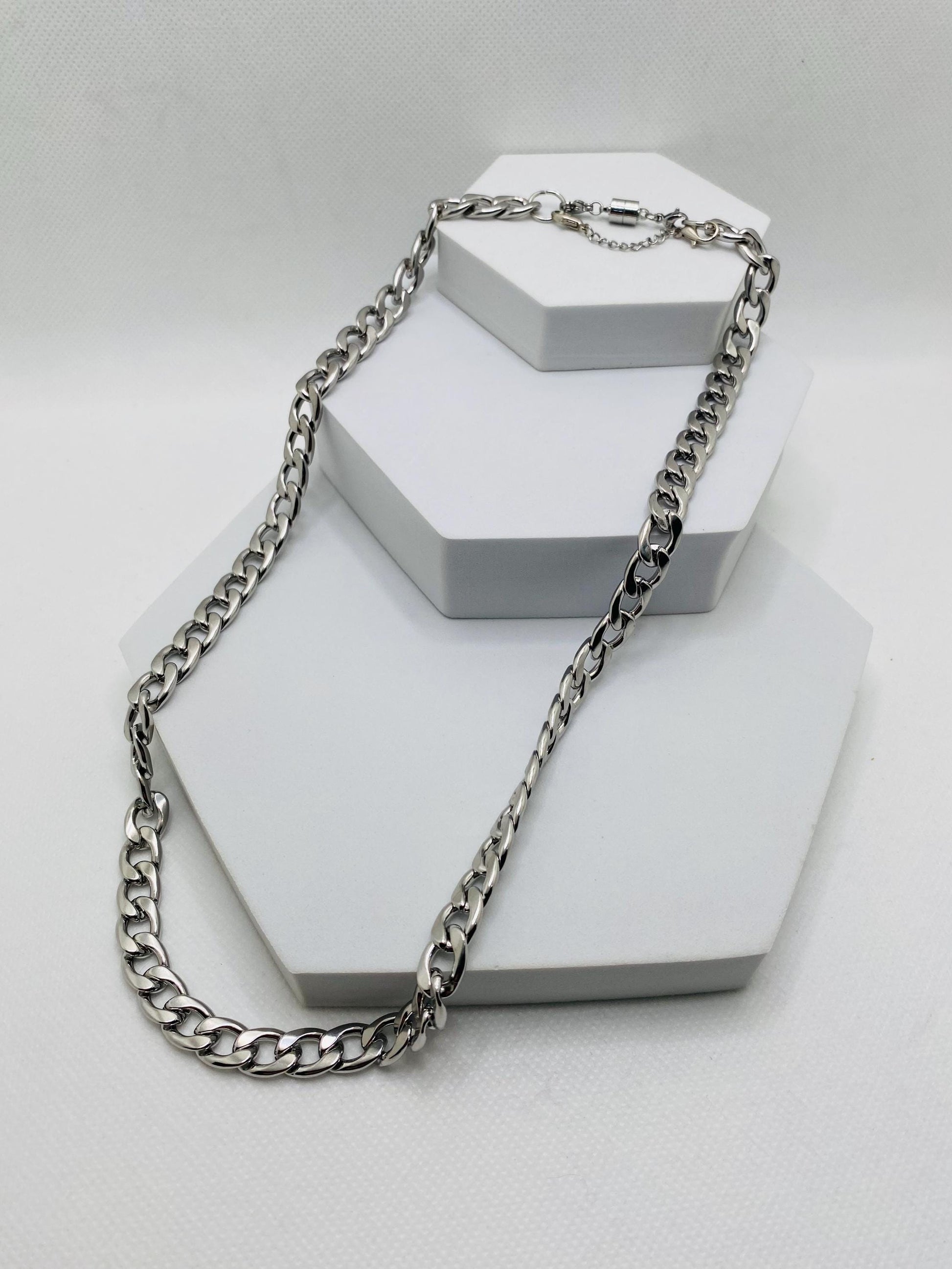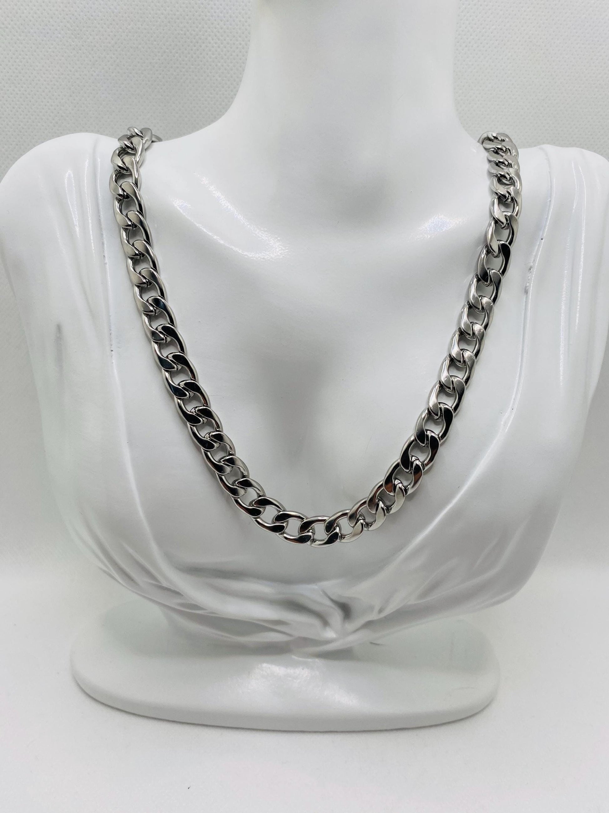 Elevate your style with our stunning 9mm Stainless Steel Cuban Link Chain Necklace, a true statement piece that combines durability with sophistication. Crafted from 304 solid stainless steel, this necklace offers a polished, silver finish that effortlessly enhances any outfit. Whether you’re dressing up for a night out or keeping it casual, this versatile chain adds a touch of elegance to your look. Featuring a secure magnetic clasp, this necklace ensures easy wear and peace of mind. No more fumbling with tricky clasps—just snap it on and you’re ready to shine! The robust 9mm Cuban links create a bold, eye-catching design that stands out while remaining comfortable enough for everyday wear. You’ll love how this piece fits seamlessly into your jewelry collection. Don’t miss out on the chance to make a statement with a chain that stands the test of time. Bring home the 9mm Stainless Steel Cuban Link Chain Necklace today and experience the perfect blend of style and functionality. Your new favorite accessory awaits!