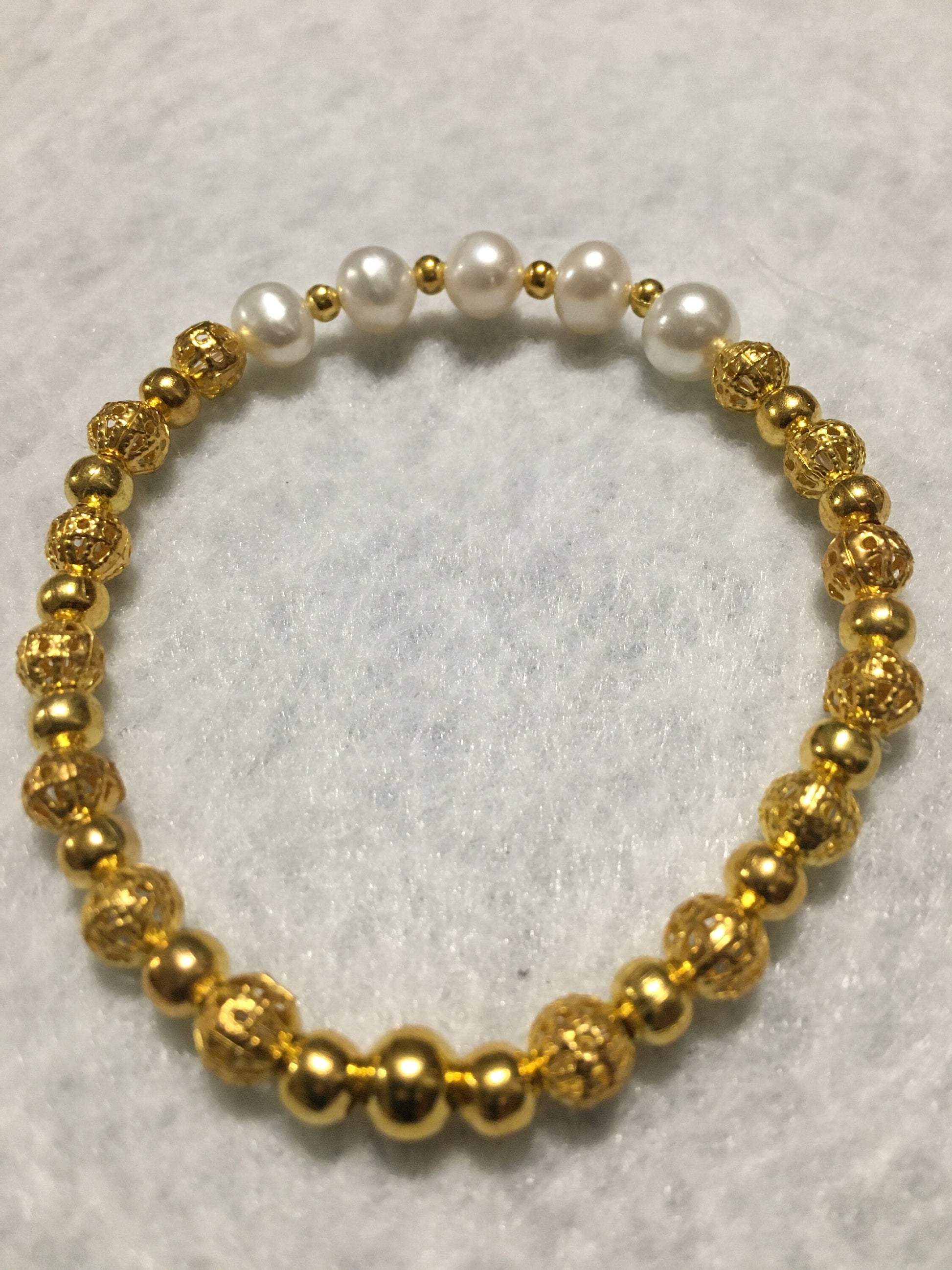PRODUCT DETAIL - 7/8mm cultured freshwater pearl gemstone beads - 6mm 18k gold plated, hollow beads - 4mm 18k gold plated spacer beads - 2mm 18k gold plated spacer beads - Strong, stretchy cord - Handmade in a clean and safe environment