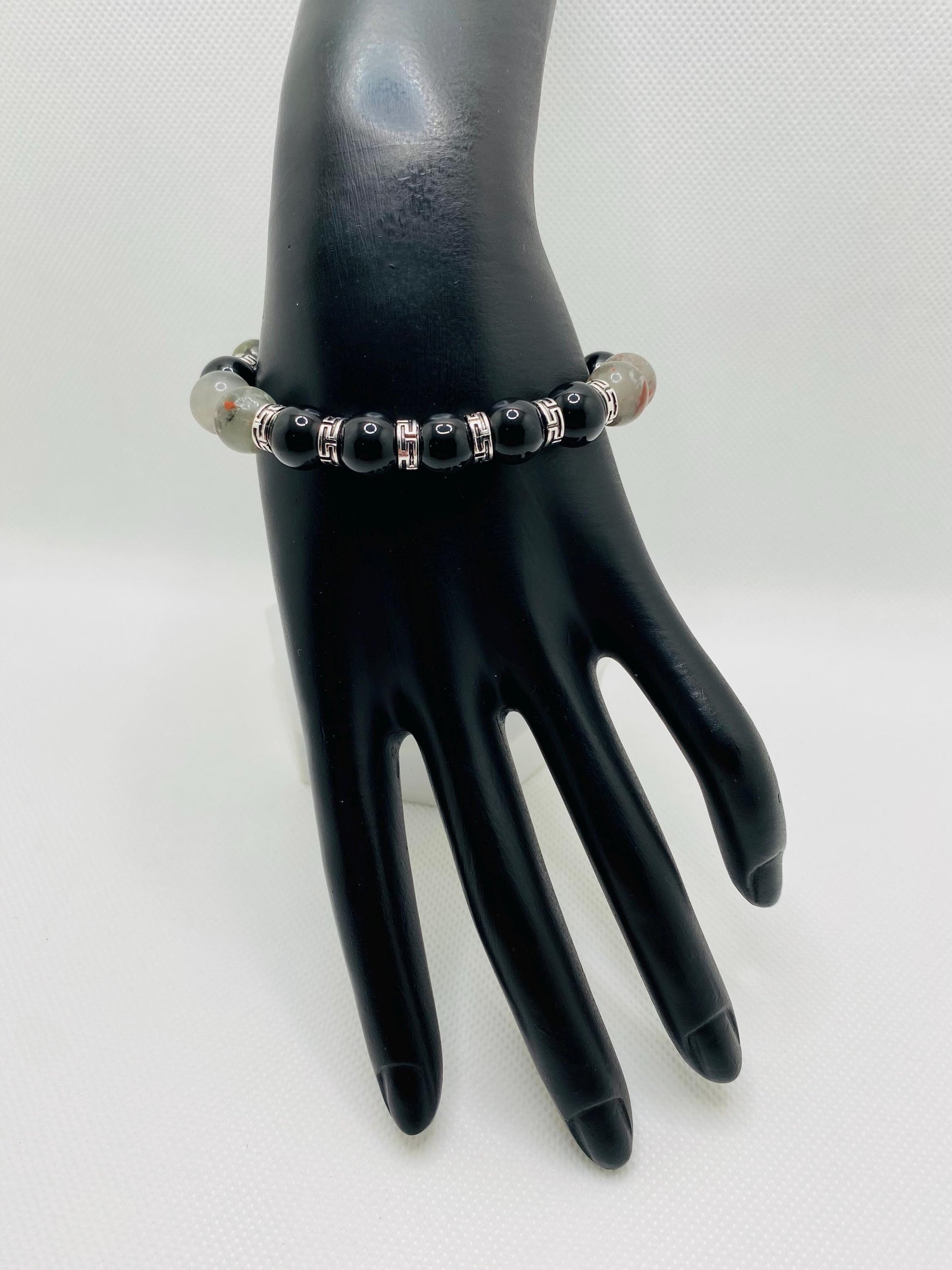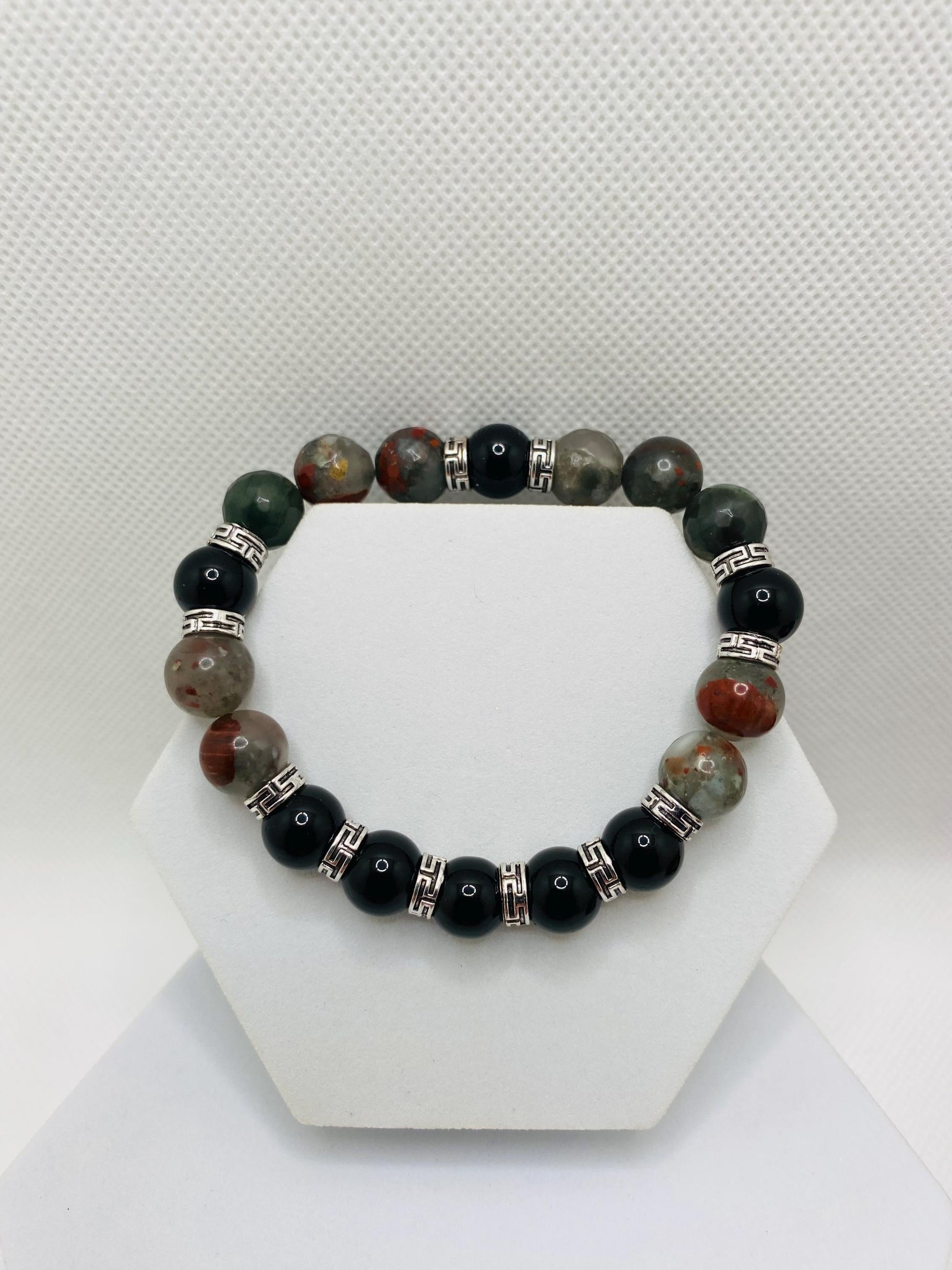 Elevate your accessory game with our stunning Black Onyx Men's Bracelet, expertly crafted with 8mm beautiful Black Onyx gemstone beads and accented by 8mm African Bloodstone Faceted Jasper gemstone beads. This unique blend of stones not only brings a touch of sophistication to your style but also carries powerful meanings rooted in ancient traditions. Black Onyx is revered for its protective properties, while African Bloodstone is associated with courage and revitalization, making this bracelet more than just a fashion statement; it's a piece that embodies strength and resilience. Perfectly versatile for any occasion, this Tibetan-inspired jewelry can easily transition from casual outings to formal events. Whether you're dressing up for a night out or adding flair to your everyday attire, this bracelet is the ideal accessory to showcase your individuality. Its comfortable fit ensures that you can wear it all day without compromising on style or comfort. Looking for a thoughtful gift? This bracelet serves as an excellent choice for birthdays, anniversaries, or just because. Delight the special men (or women) in your life with a piece that combines elegance, meaning, and a touch of adventure. Don't miss out—grab your Black Onyx Men's Bracelet today and step up your style game!