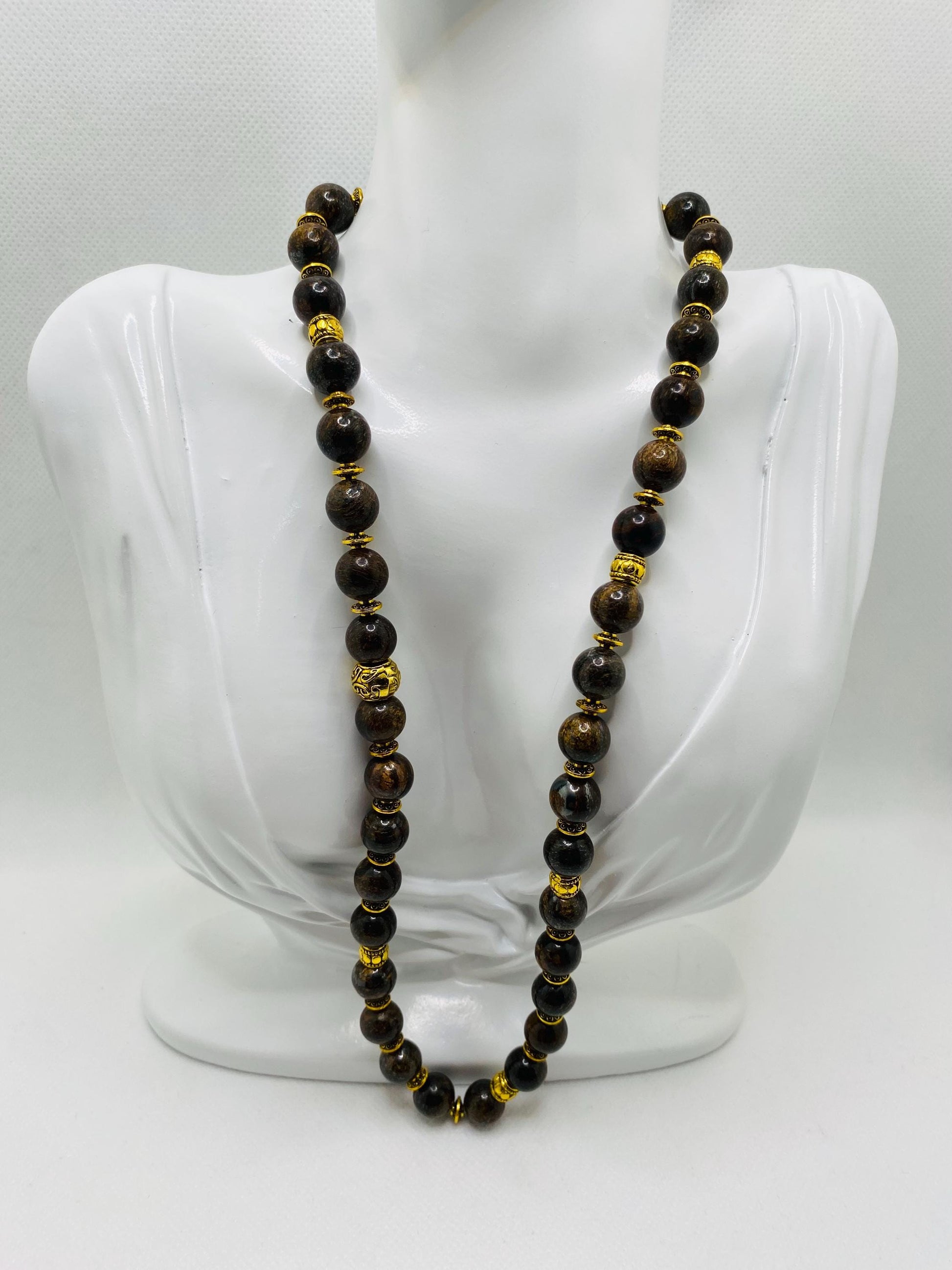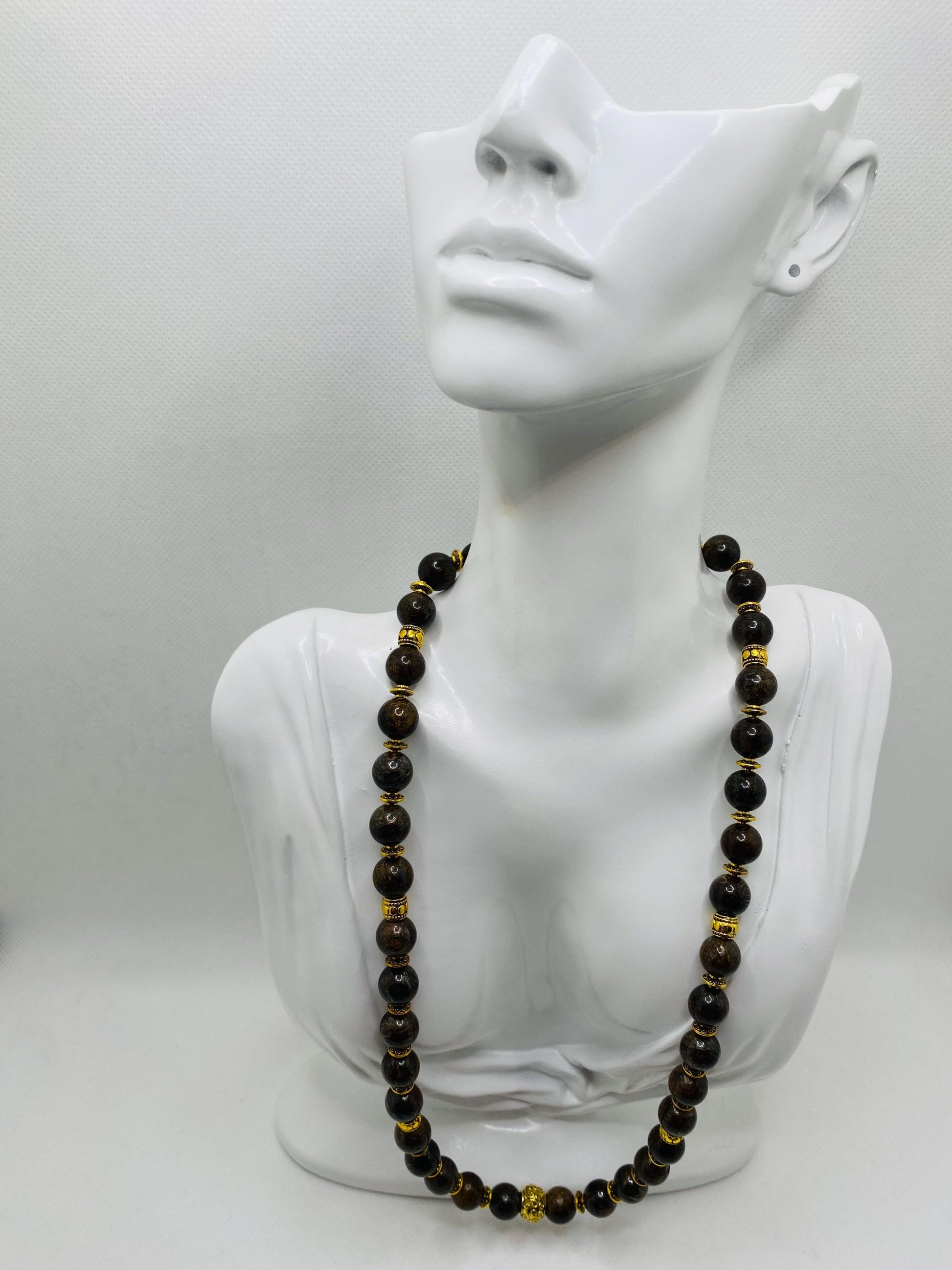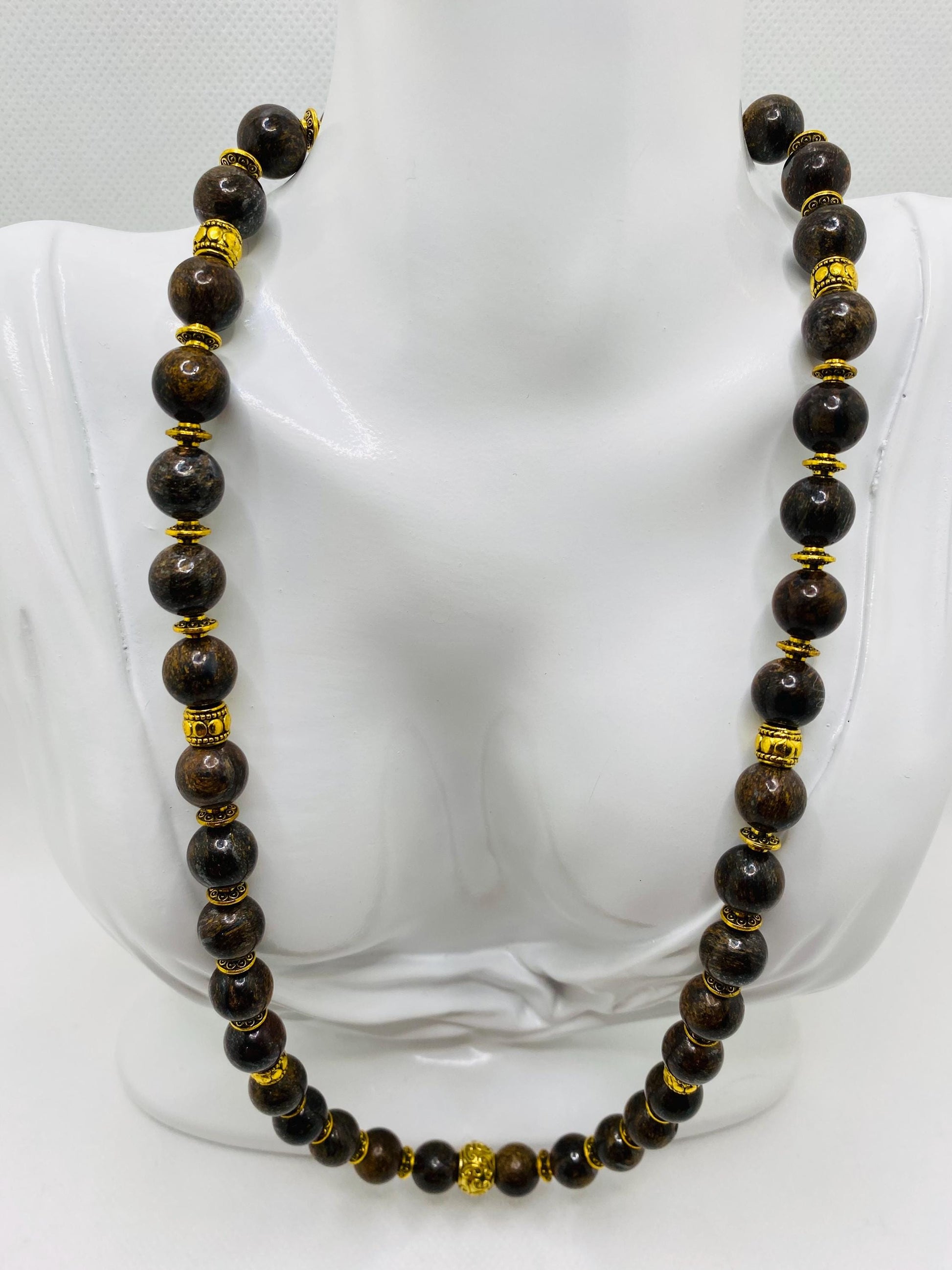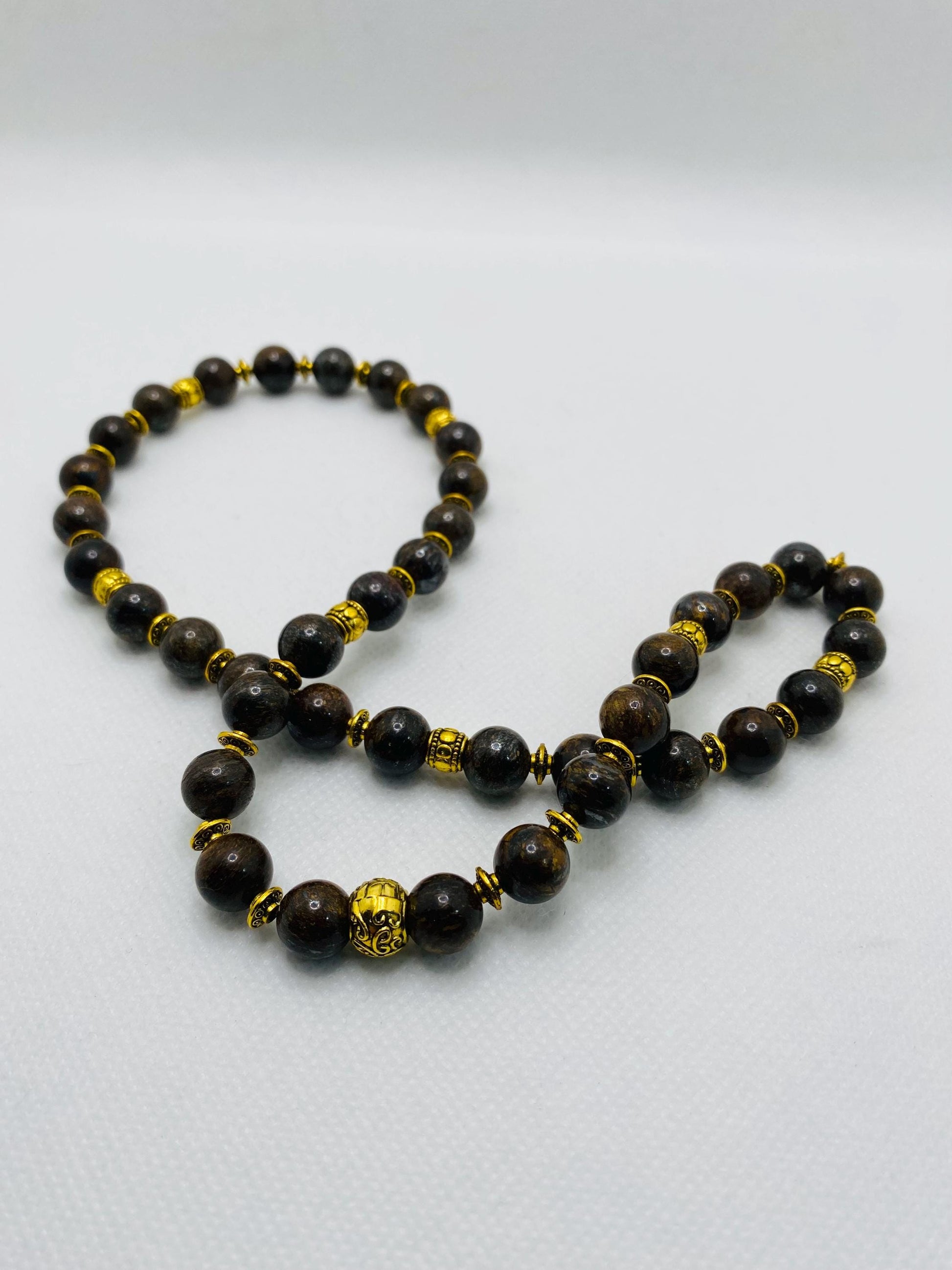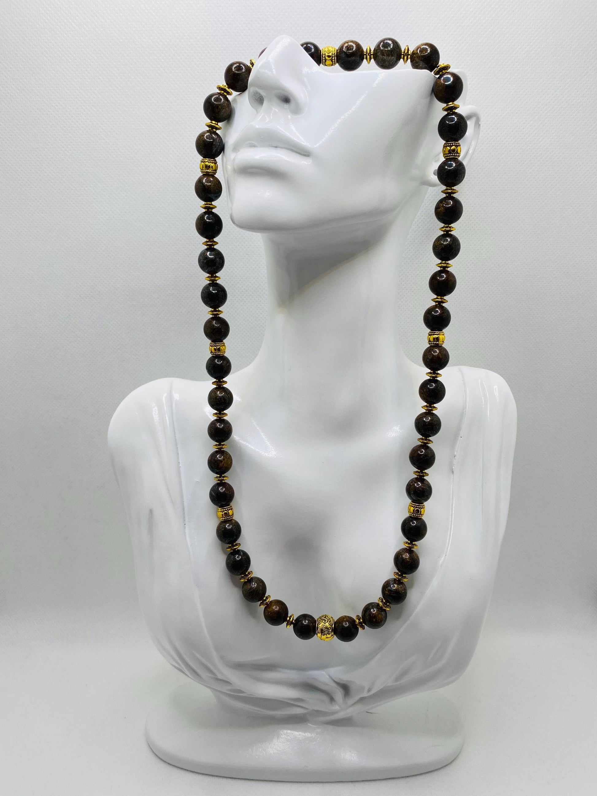 Bronzite Beaded Necklace: Unisex Gemstone Jewelry with Tibetan Spacers