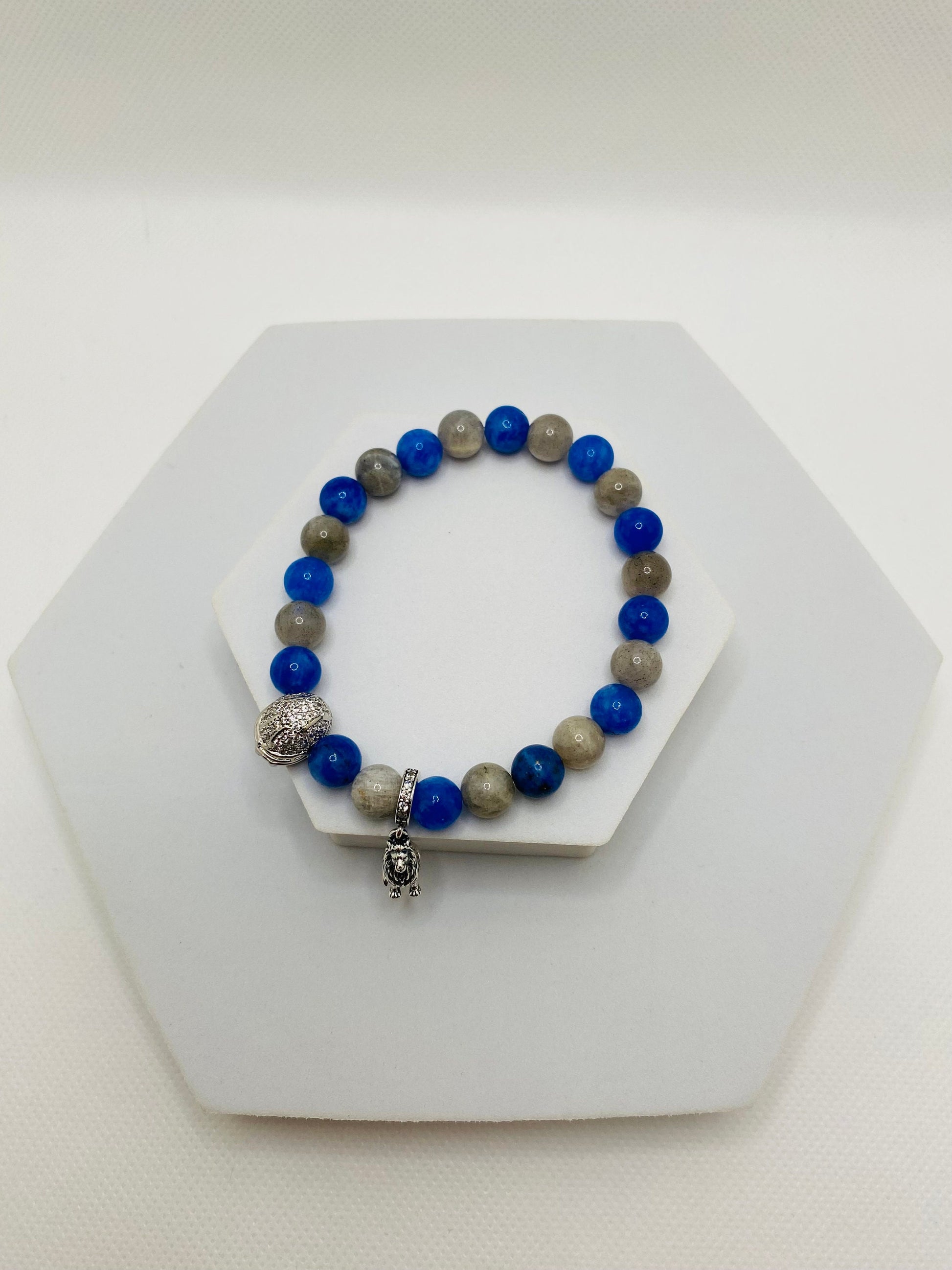 Show your team spirit with our Detroit Lions Charm Bracelet, a stunning blend of style and representation. Crafted with 8mm blue Kyanite and natural Labradorite gemstone beads, this bracelet captures the essence of the Lions’ colors while adding a touch of elegance. The unique properties of these gemstones enhance your energy, making this accessory not just fashionable but also beneficial. Adorned with a striking silver-plated lion pendant, this charm bracelet is the perfect way to showcase your loyalty to the Lions. The blue Kyanite beads are known for their calming properties, providing a sense of peace and clarity, while the Labradorite beads add a mystical flair with their iridescent sheen. Whether you’re at the game, out with friends, or just running errands, this bracelet is sure to turn heads and spark conversations. Don't miss your chance to elevate your wardrobe with this one-of-a-kind charm bracelet! Grab your Detroit Lions Charm Bracelet today and wear your pride on your wrist.