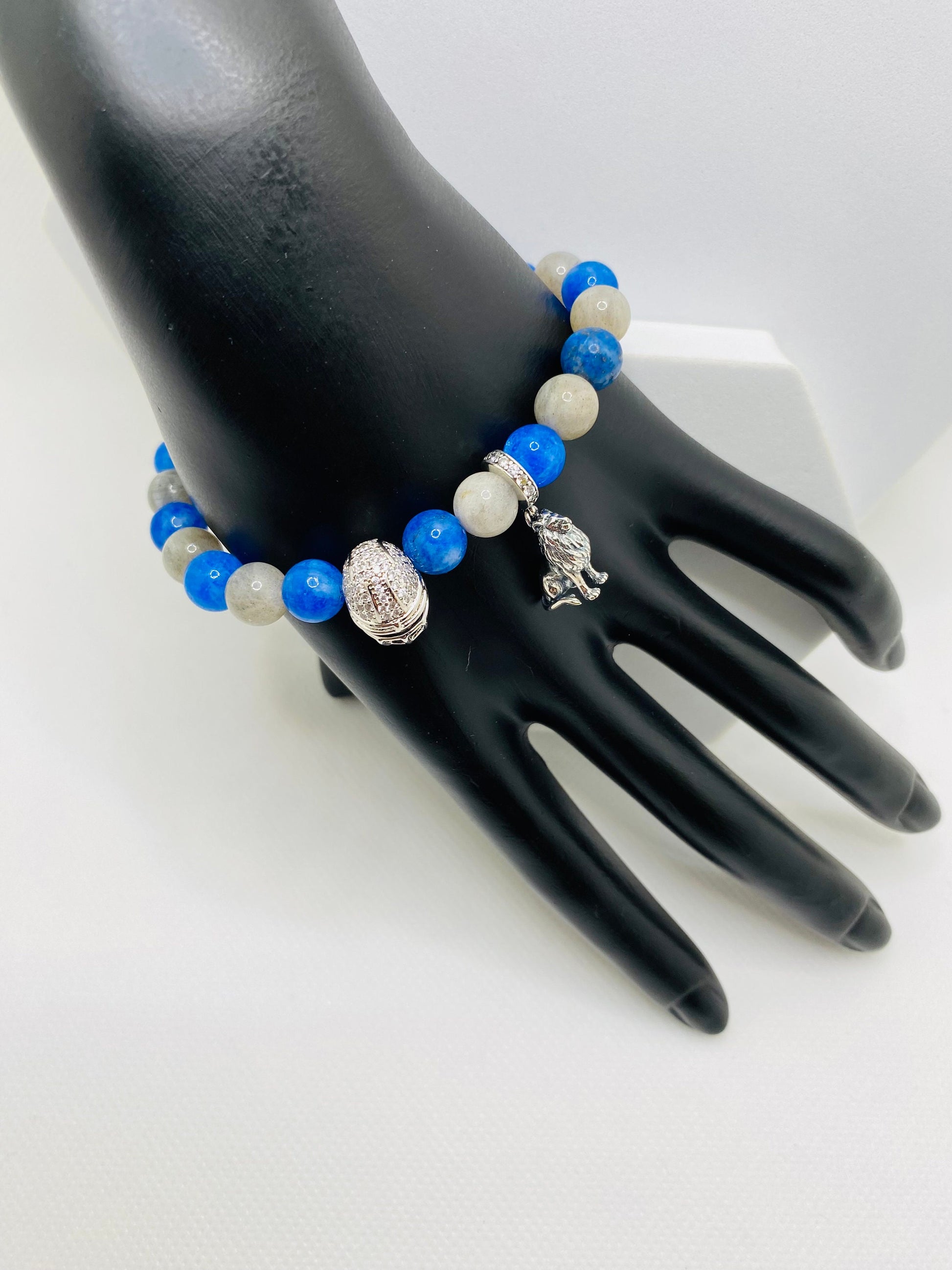 PRODUCT DETAIL - 8mm Blue Kyanite gemstone beads - 8mm natural Labradorite gemstone beads - Silver Plated Lion Pendant Charm - Silver Metallic plated football helmet with inlaid cubic zirconia - Strong, stretchy cord - Handmade in a clean and safe environment