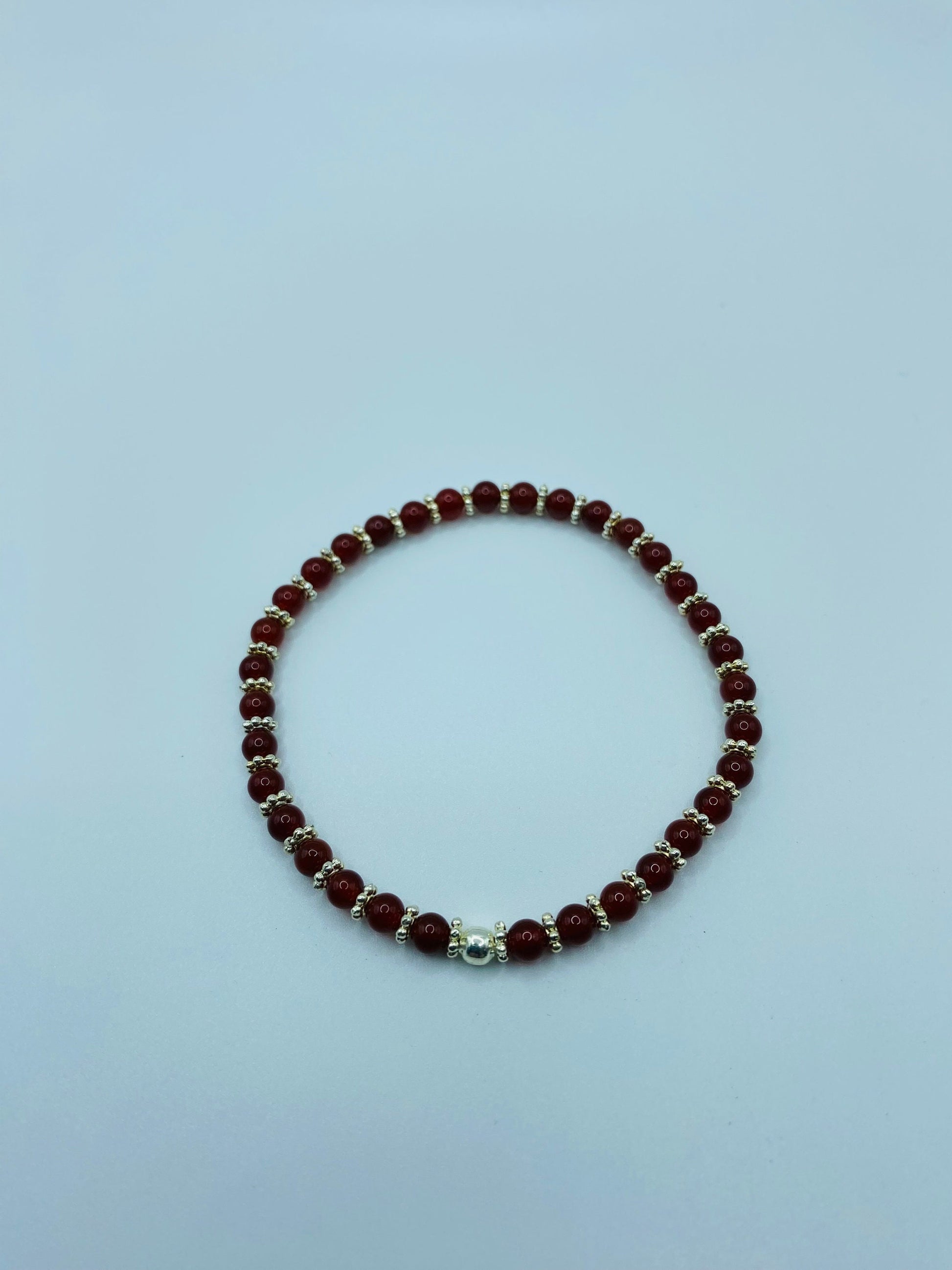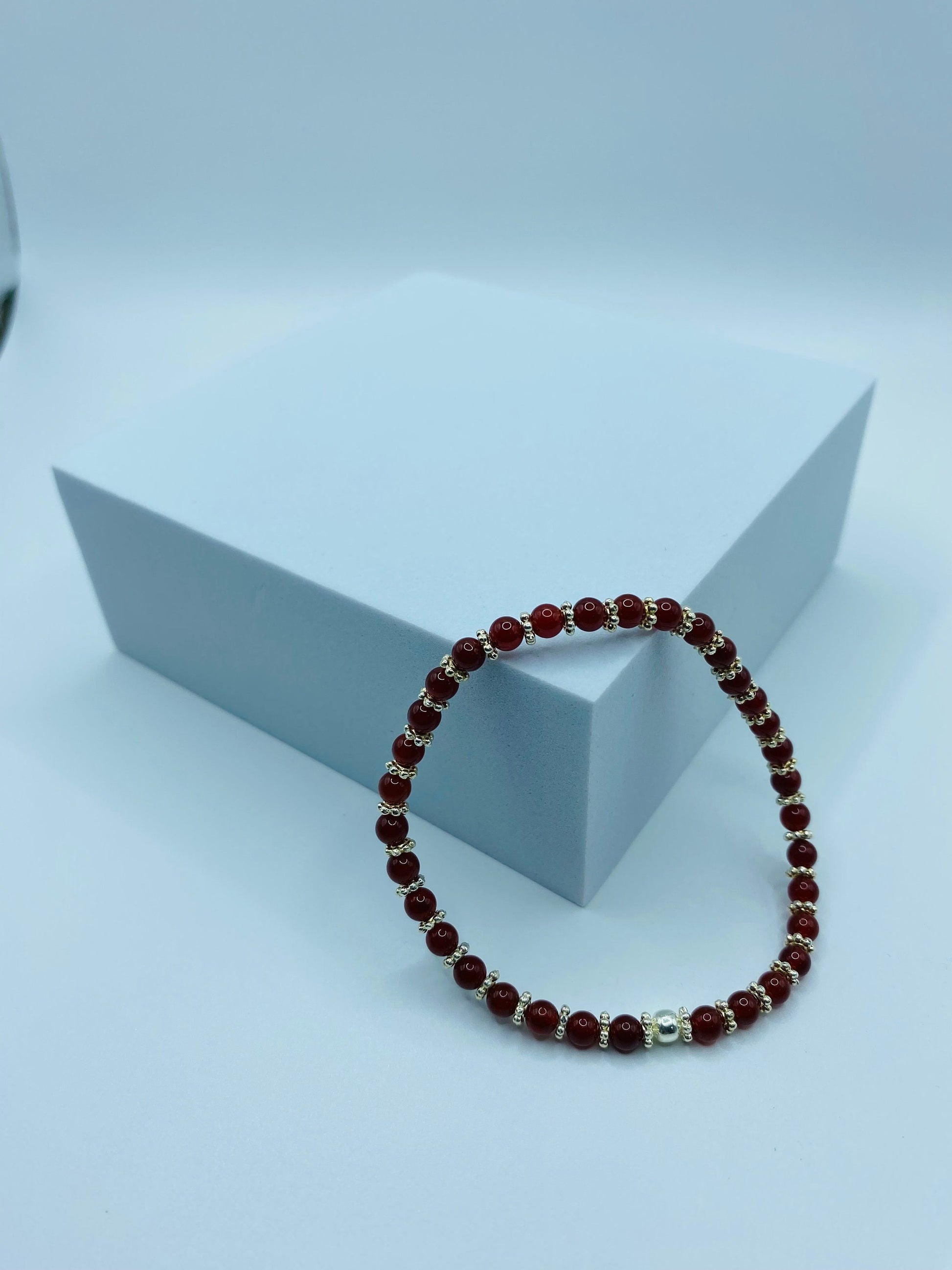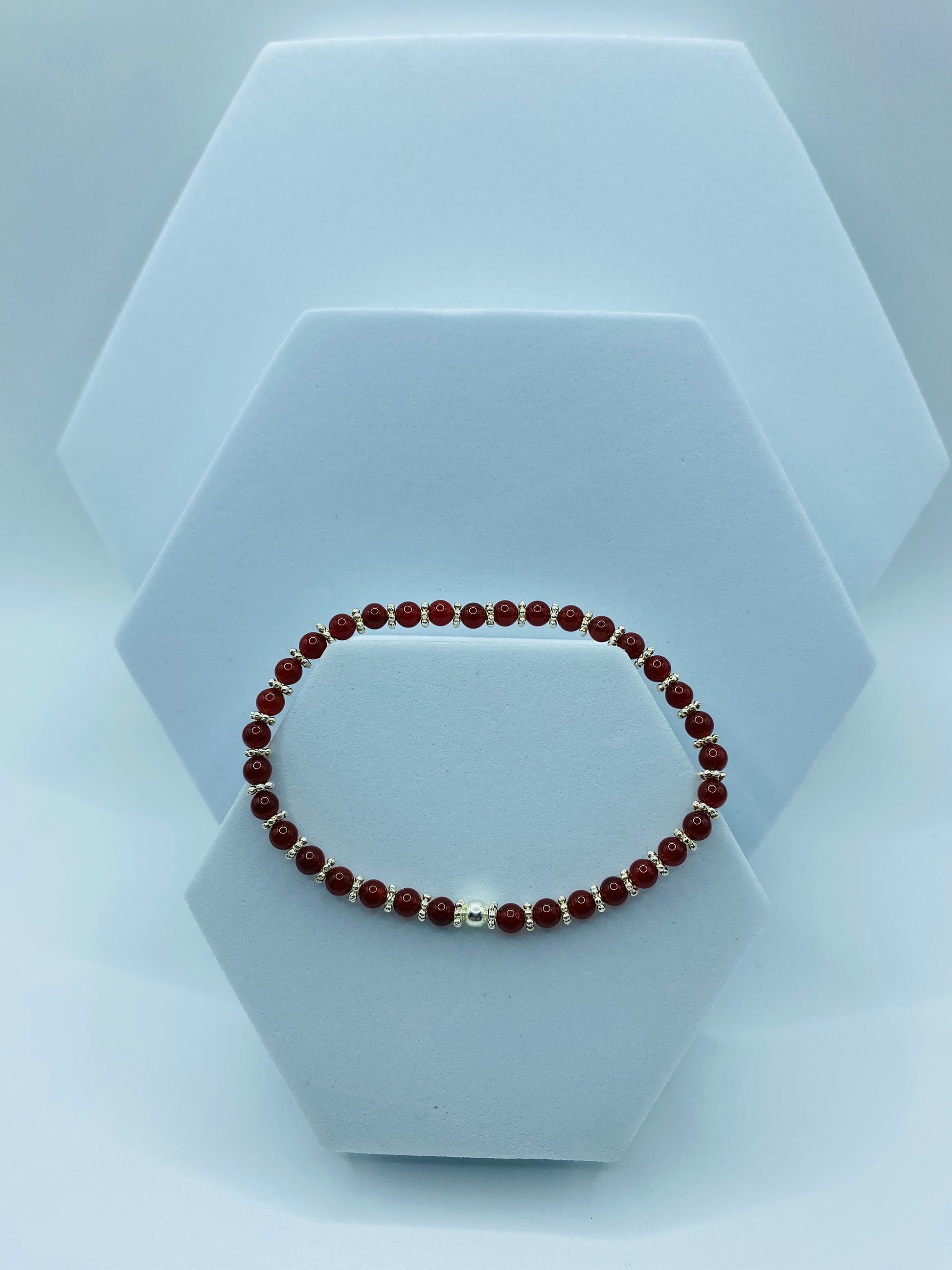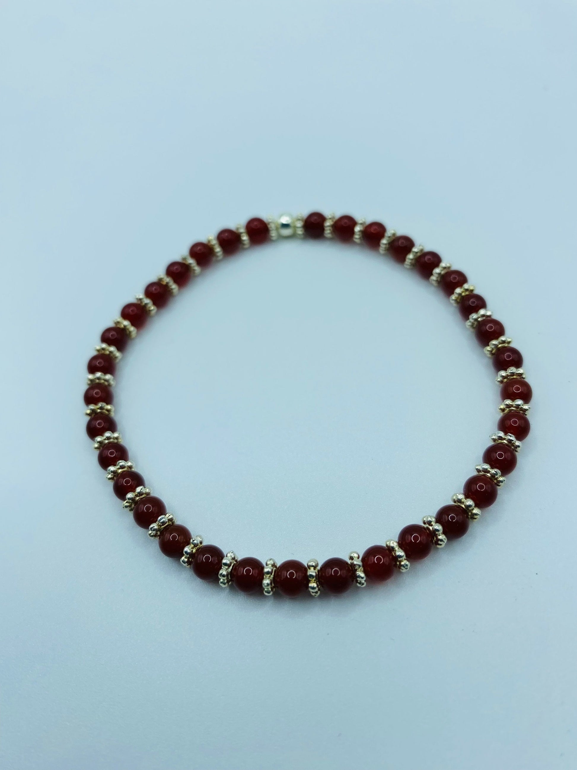 PRODUCT DETAILS - 4mm dark red Garnet gemstone beads - 4mm silver plated Hematite round bead - 4mm silver plated snowflake spacers - Strong, stretchy cord - Handmade in a clean and safe environment