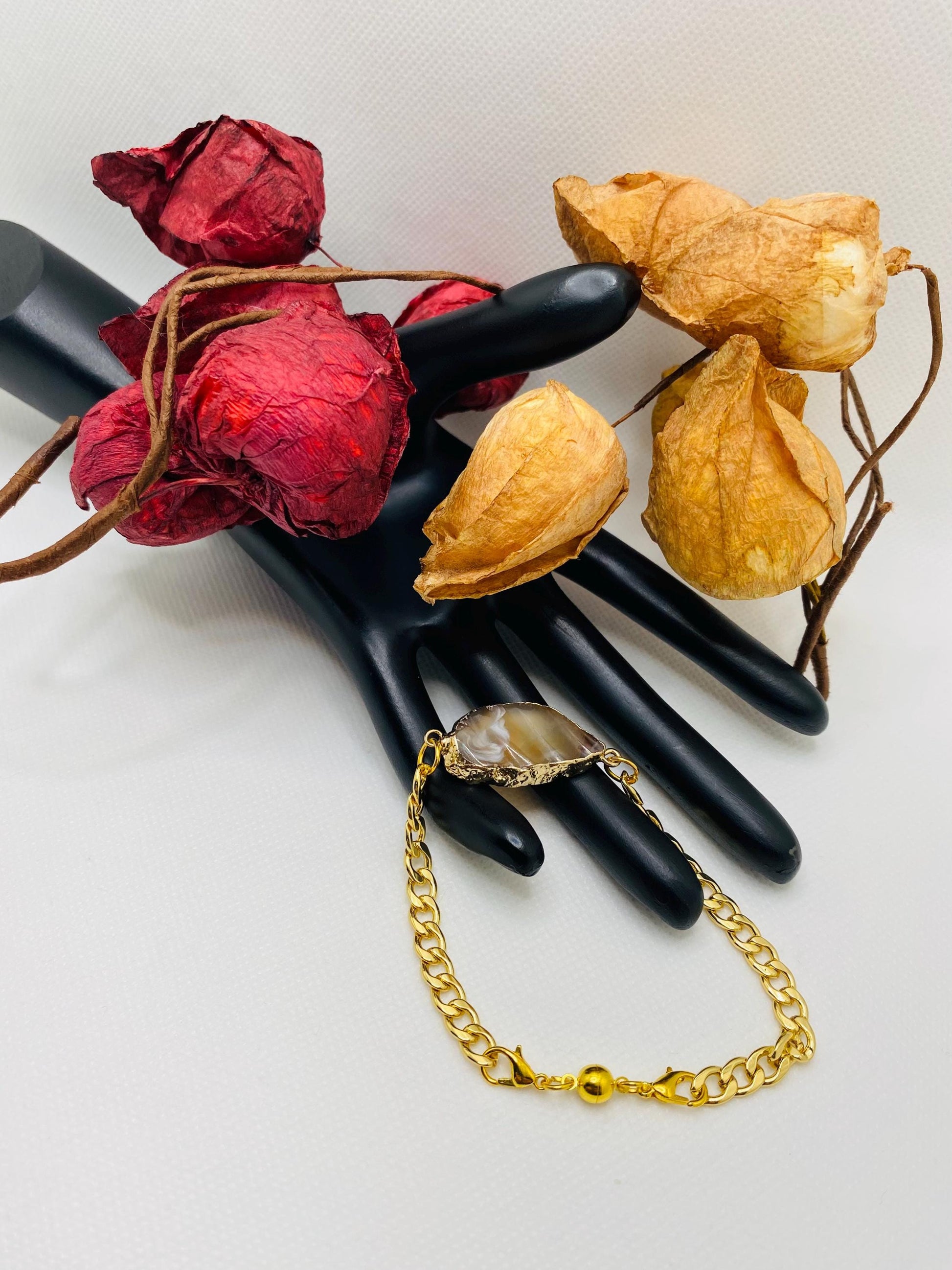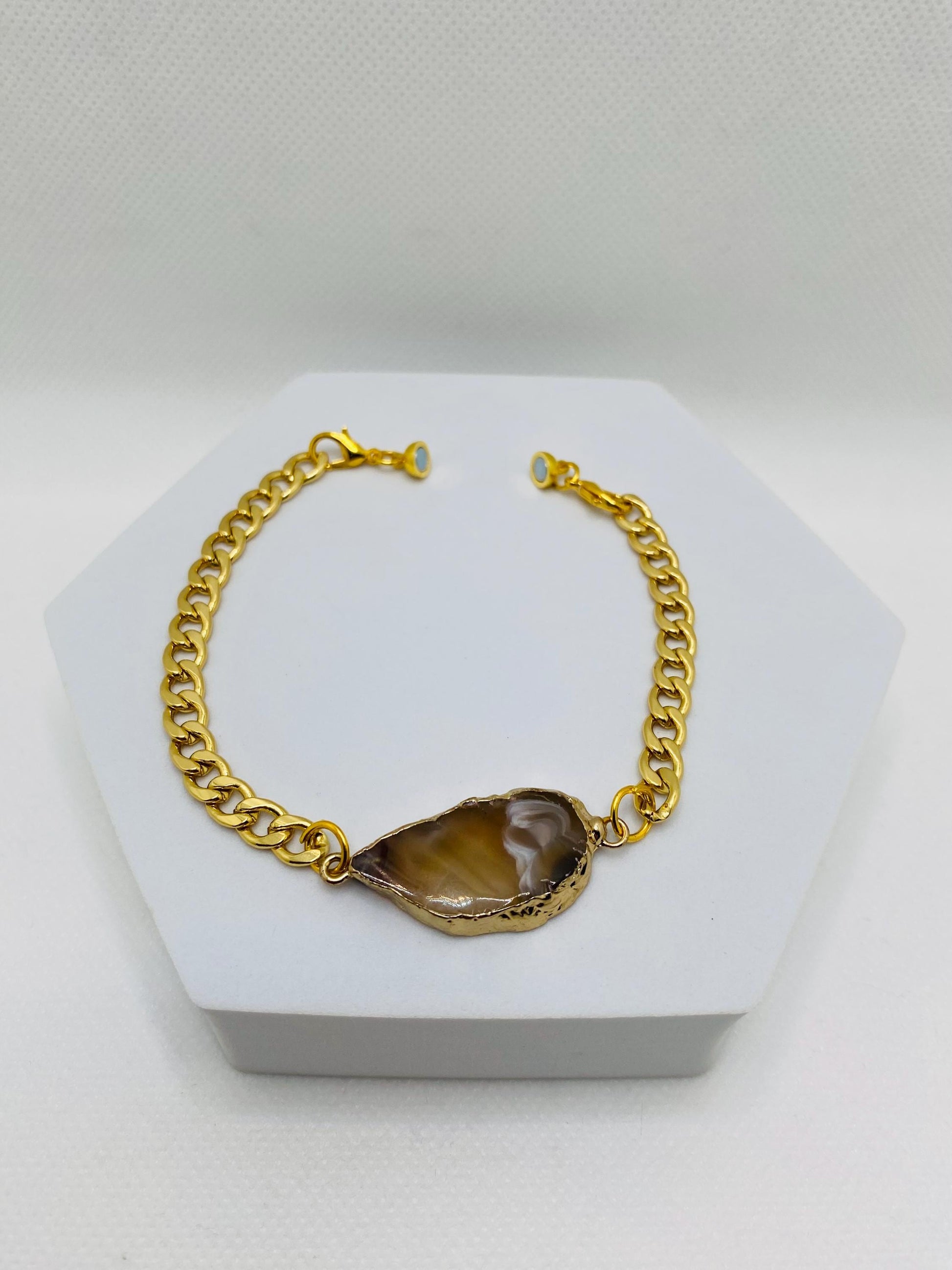 Gold Plated Cuban Link Bracelet: Agate Slice, Magnetic Clasp