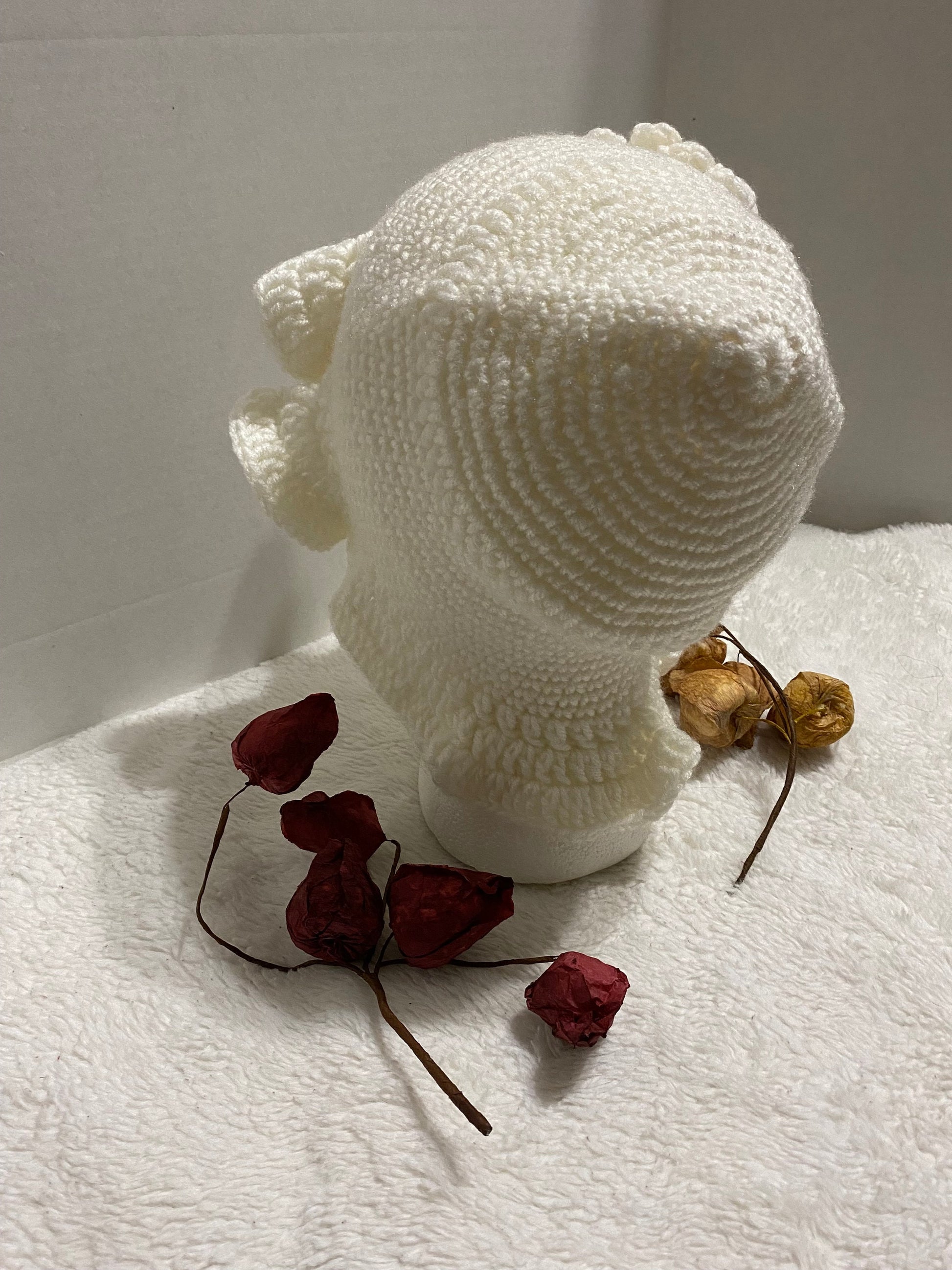 Handmade Crochet Bucket Hat: White Acrylic Flower Hat