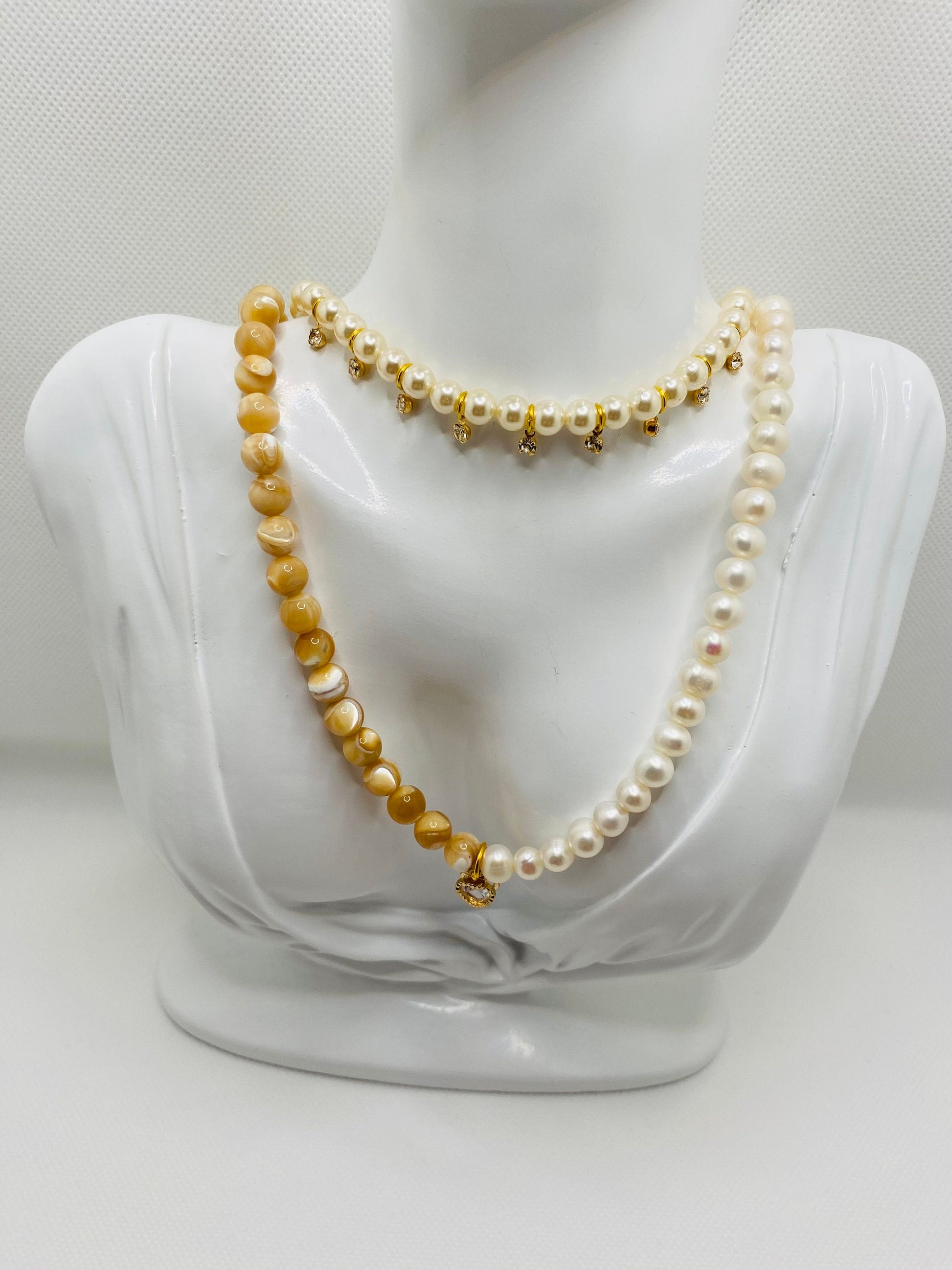 SIZE: All Necklaces are one of a Kind this Mother of Pearl and Freshwater Pearl Necklace is 18 inches Long