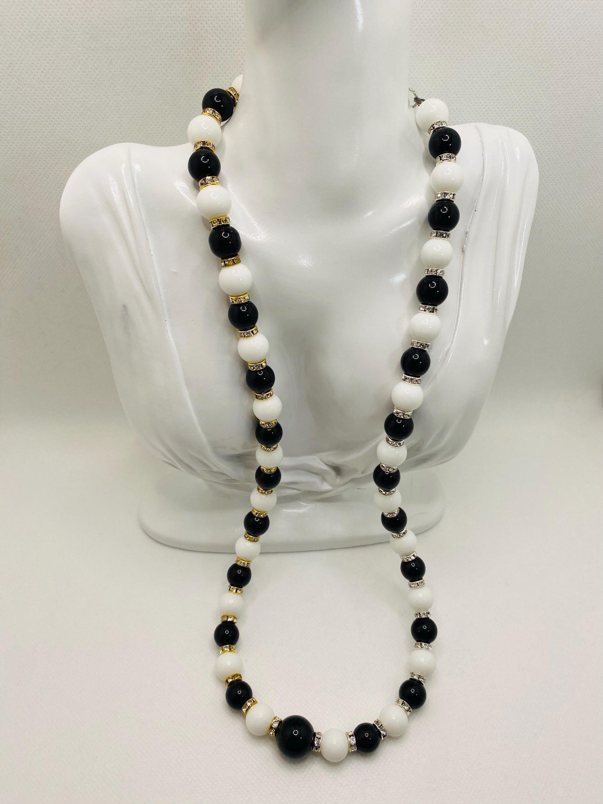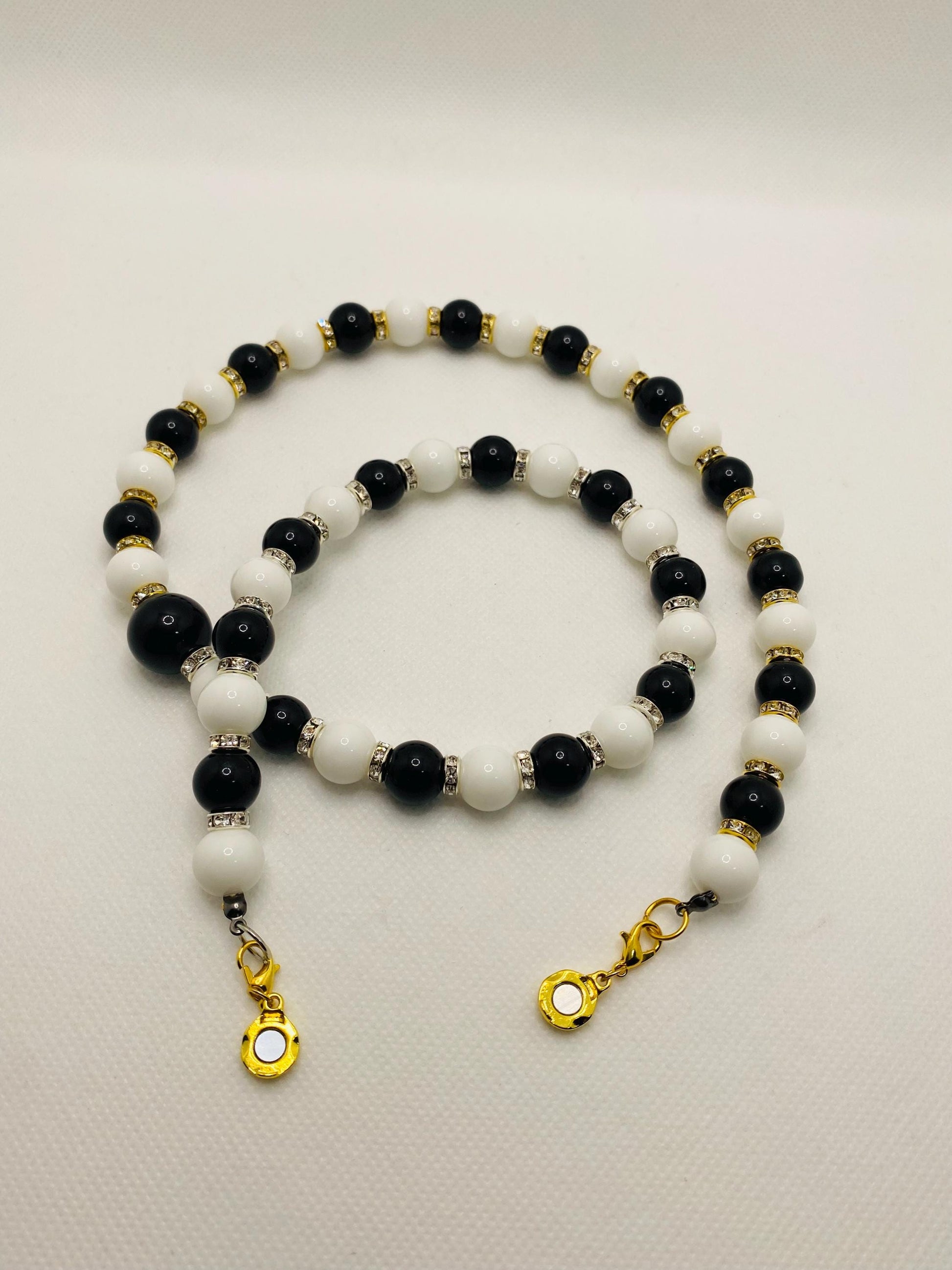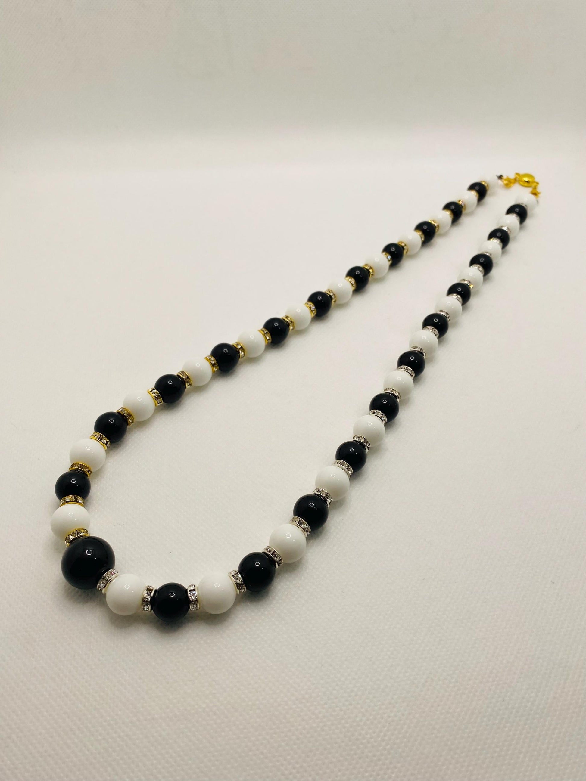 Handmade Onyx Gemstone Necklace: Black & White Beaded Jewelry
