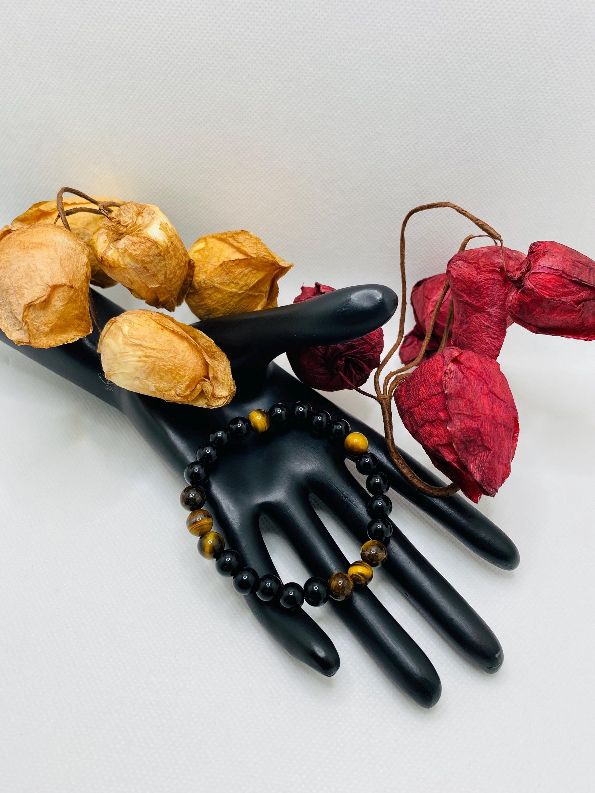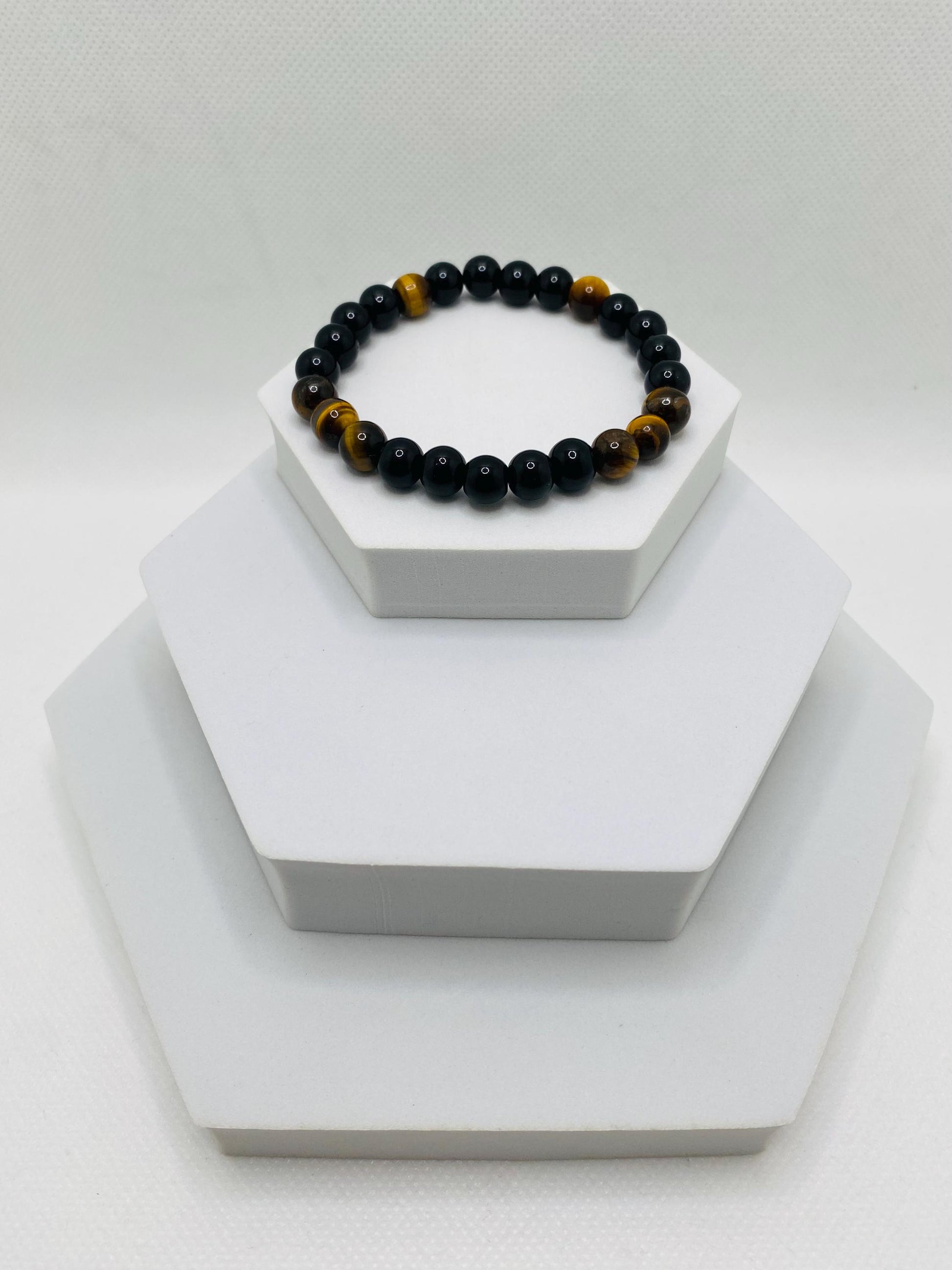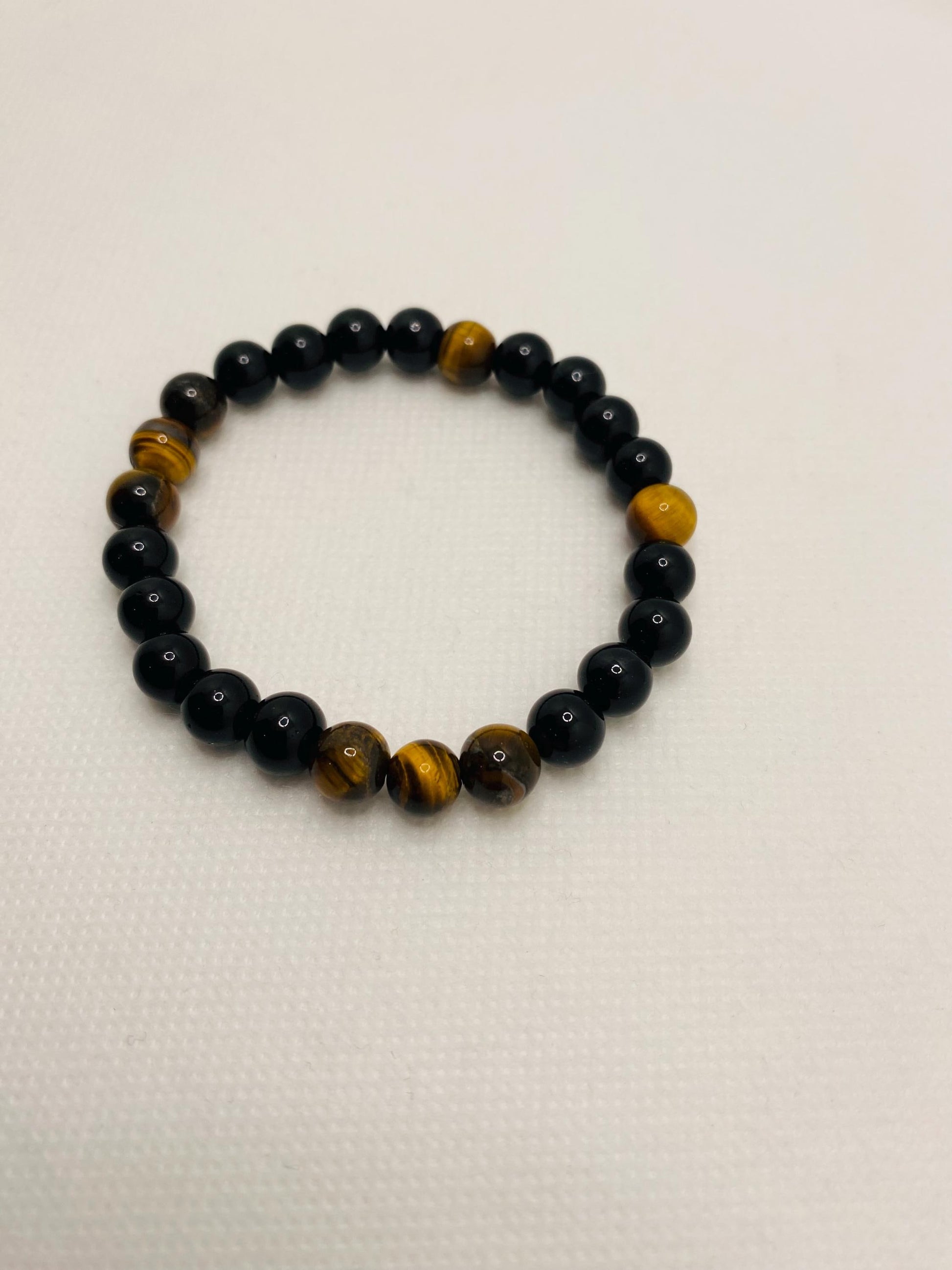 PRODUCT DETAIL - 8mm AAA black onyx gemstone beads - 8mm AAA yellow tiger's eye gemstone beads - Strong, stretchy cord - Handmade in a clean and safe environment