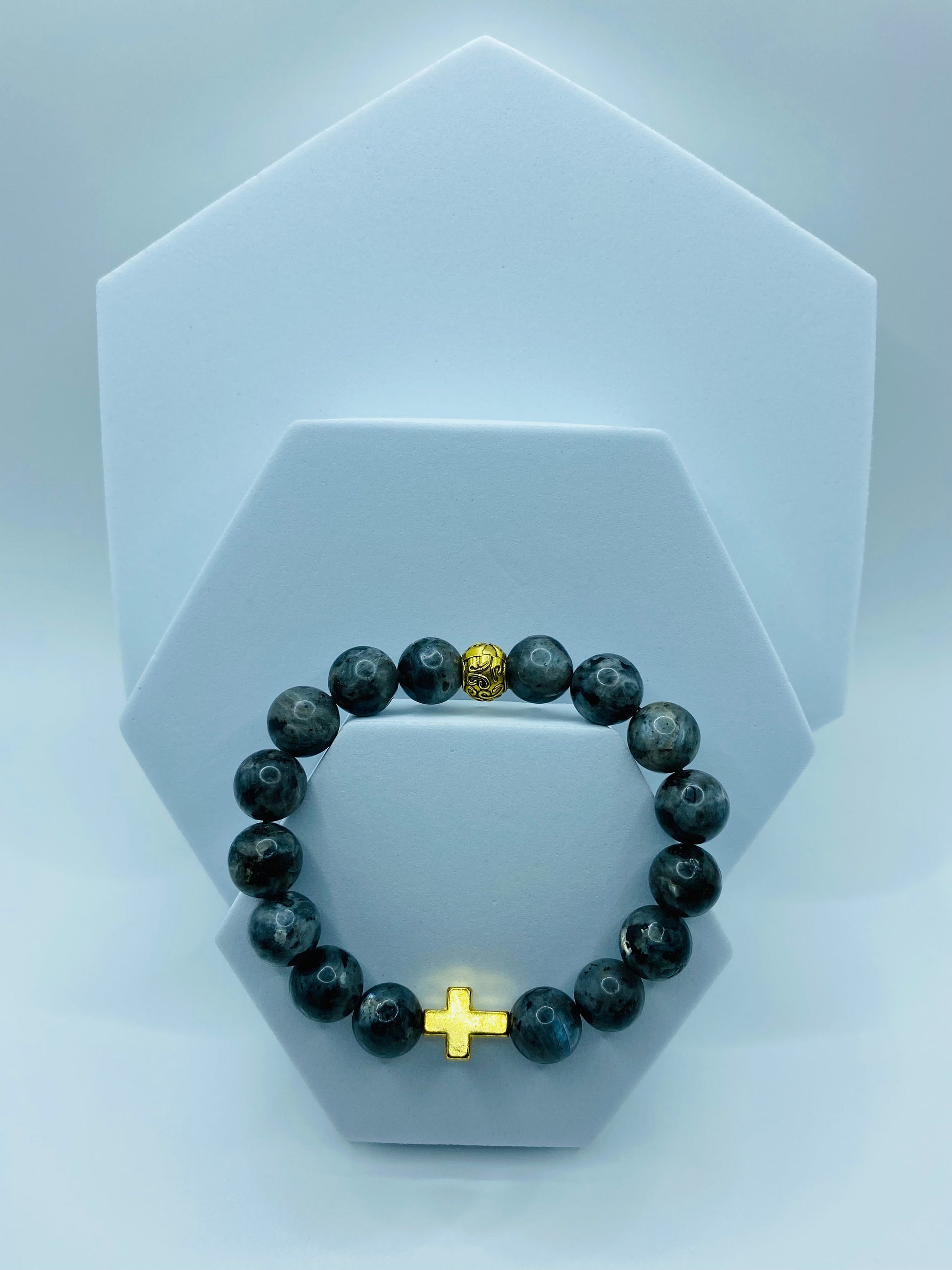 Add a touch of faith to your jewelry collection with this stunning Labradorite Bracelet featuring a delicate Gold Cross Charm. Known for its protective properties, Labradorite is a powerful stone that brings positive energy and clarity. This elegant Charm Bracelet serves as a beautiful reminder of your spiritual beliefs while adding a stylish touch to your outfit. Perfect for everyday wear or as a thoughtful gift for someone special who values religious jewelry. Wear this Charm Bracelet as a symbol of faith and protection, or gift it to a loved one for an extra special touch.