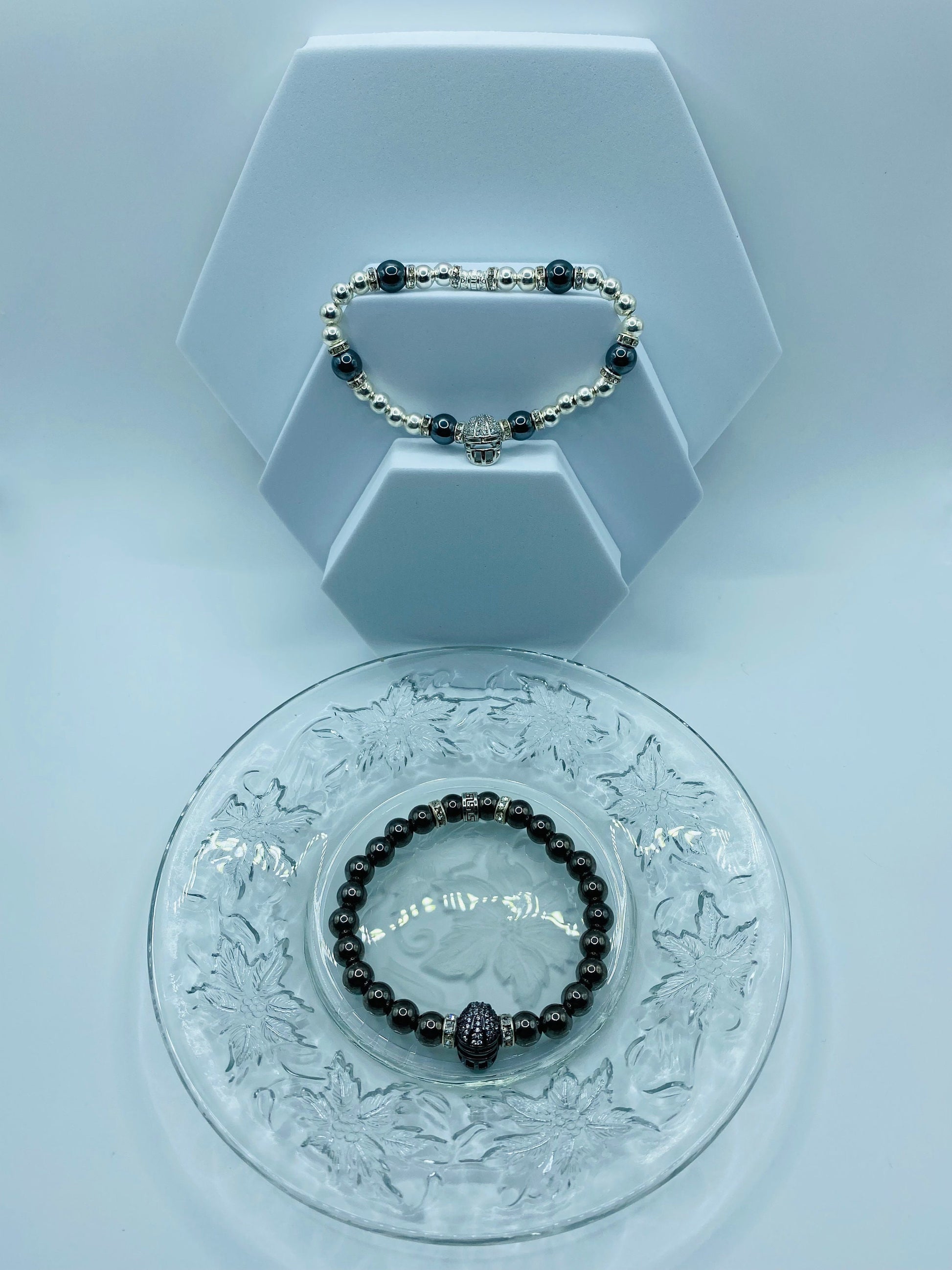 Introducing our stunning Las Vegas Raiders black hematite gemstone football bracelet! This eye-catching piece features a beautiful inlaid CZ football helmet charm, adding a touch of elegance to your game day attire. The silver and black color scheme perfectly represents your team spirit, while the hematite gemstones give it a stylish edge. Show off your love for the Raiders with this unique and charming bracelet. Perfect for any football fan! this piece will let you stand out in the Croud wherever you are GO RAIDERS!