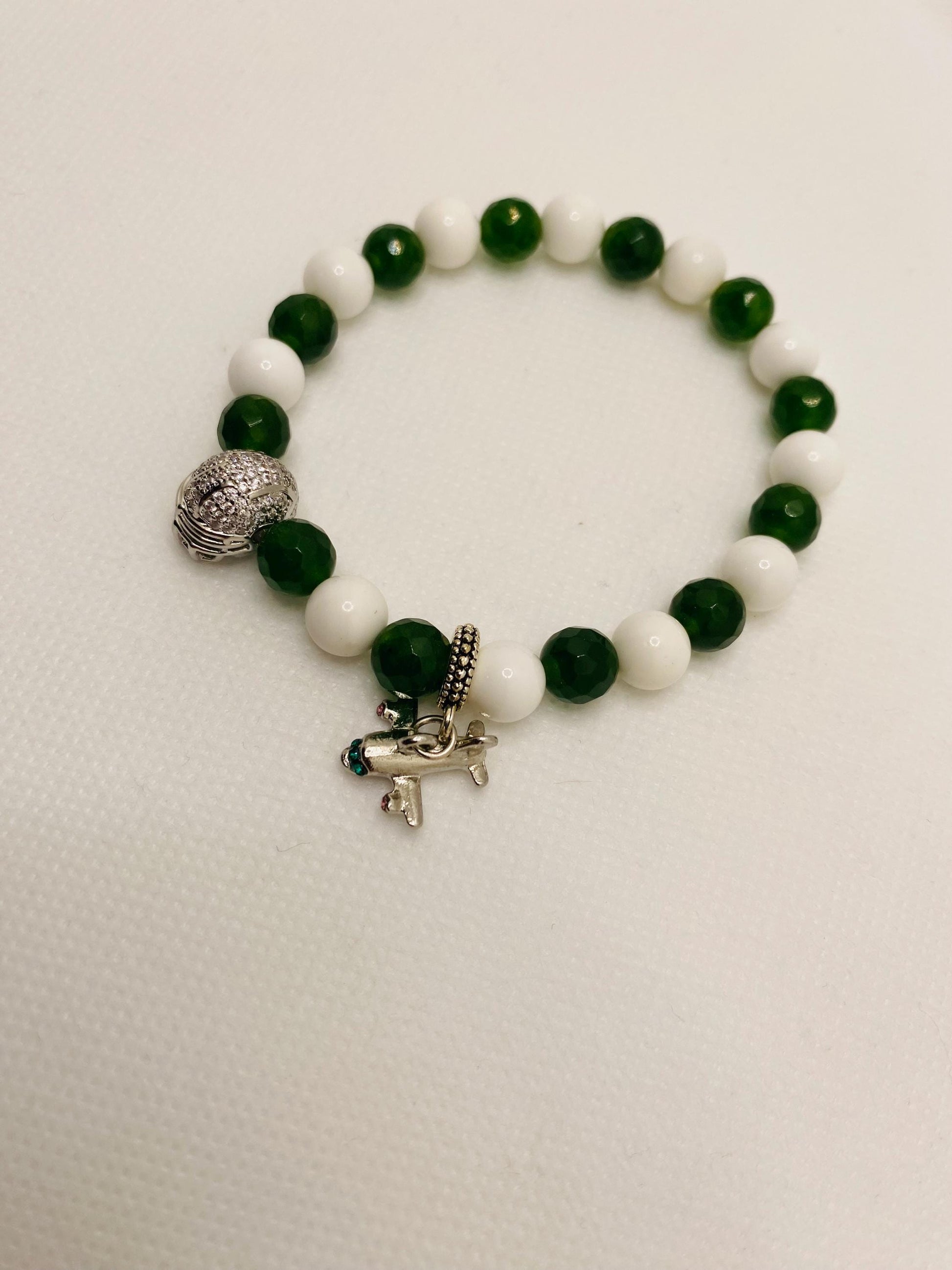 New York Jets Jade Beaded Bracelet: Football Helmet & Airplane Charm