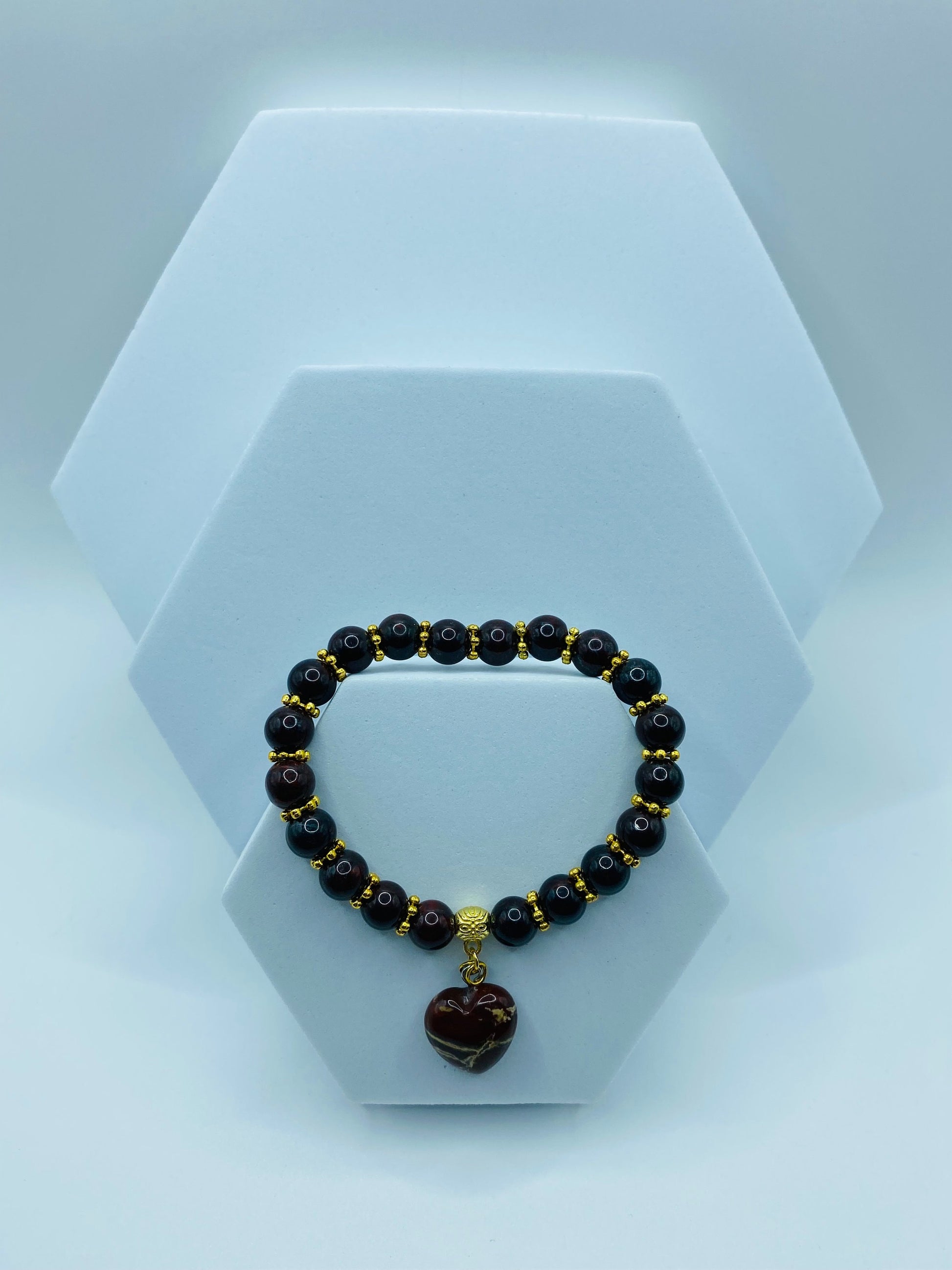 Poppy Jasper Heart Pendant Bracelet: Gold Accents, Gemstone Beads