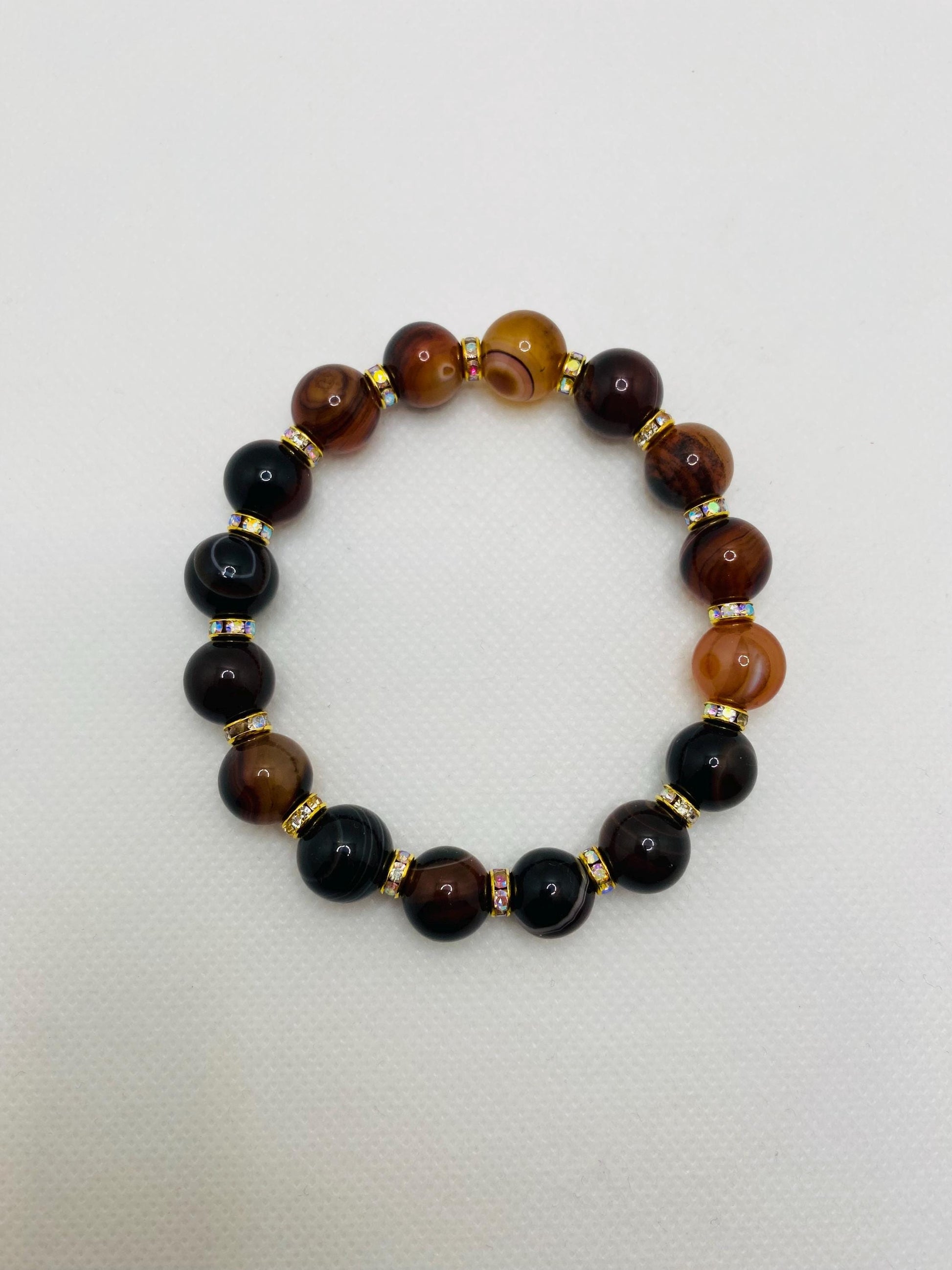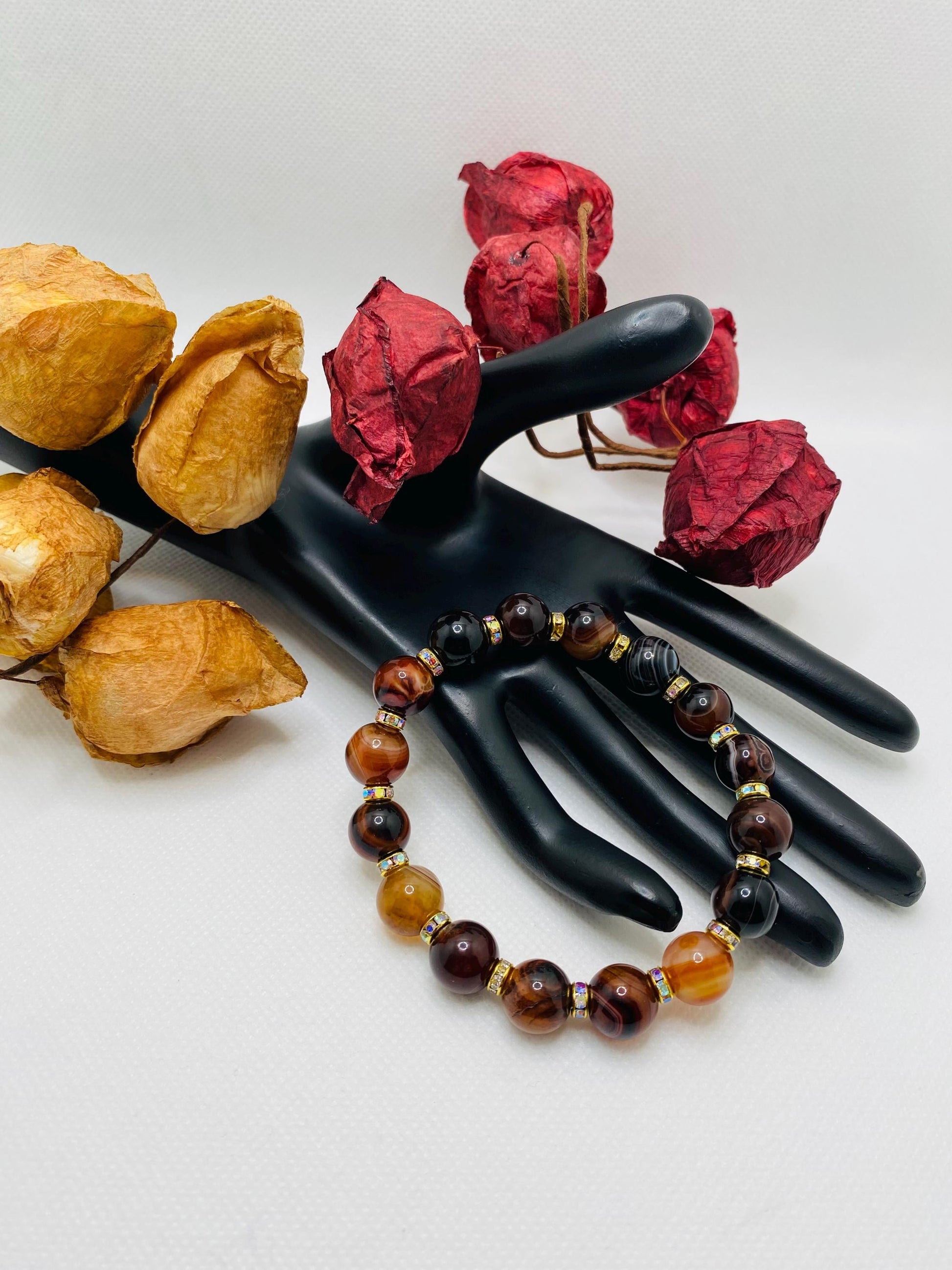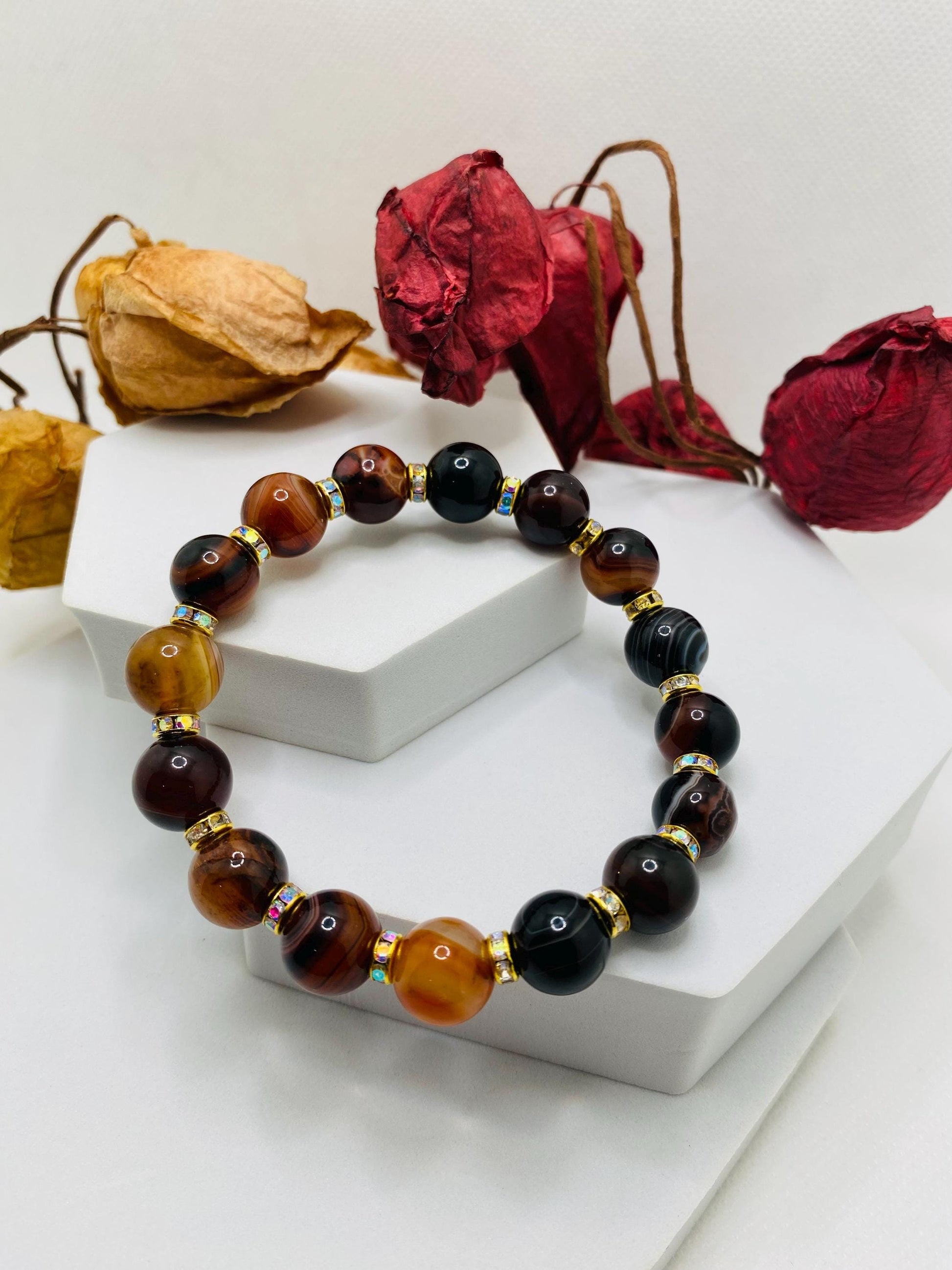 PRODUCT DETAILS : 12MM natural red dream agate Gemstone Beads : 6mm sparkling rhinestone rondelle spacers : Strong Stretchy Elastic Cord : 100% Handmade in a Safe and Clean Environment