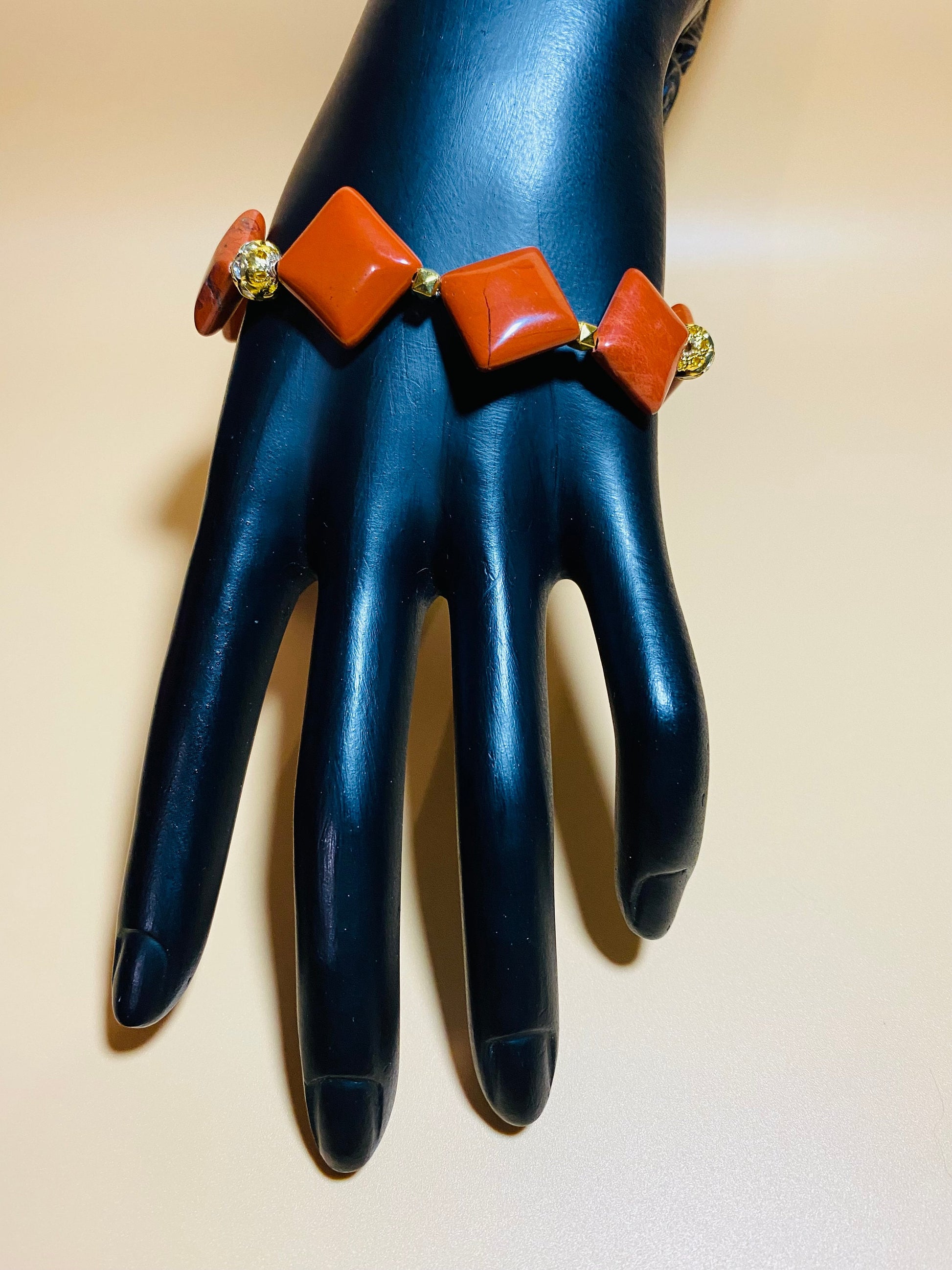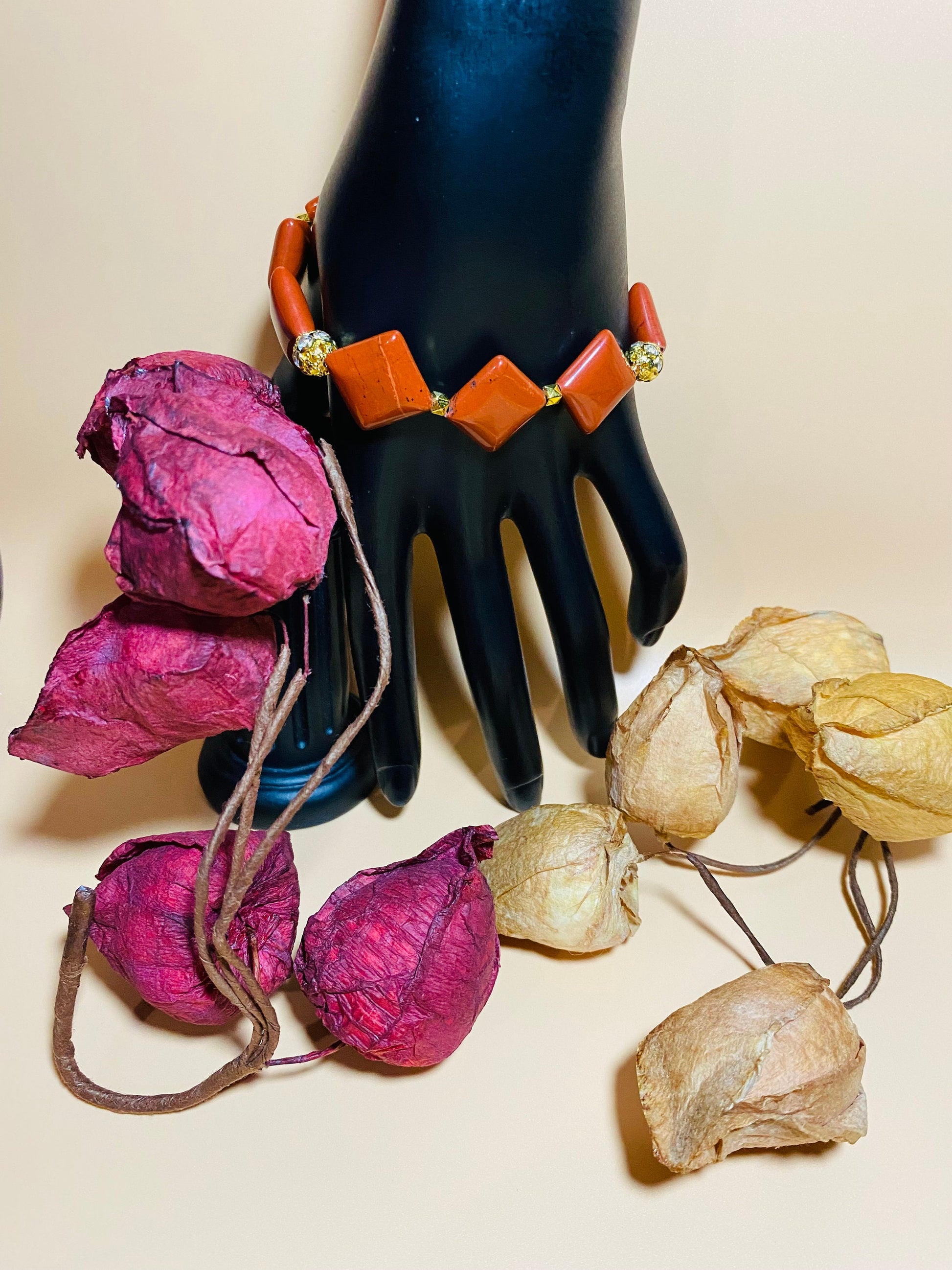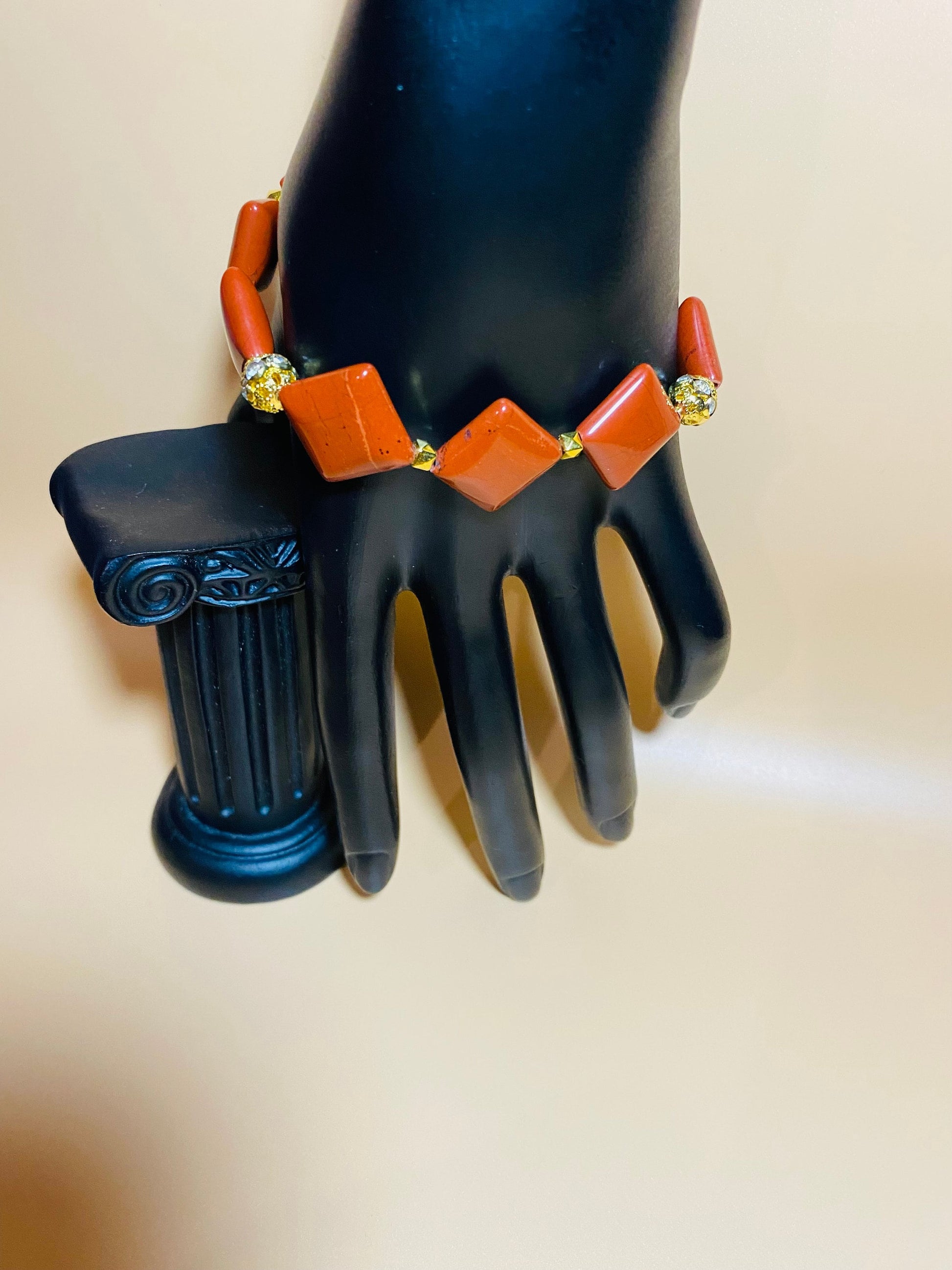 Red Jasper Gemstone Bracelet: 18k Gold Beads, Handmade Jewelry