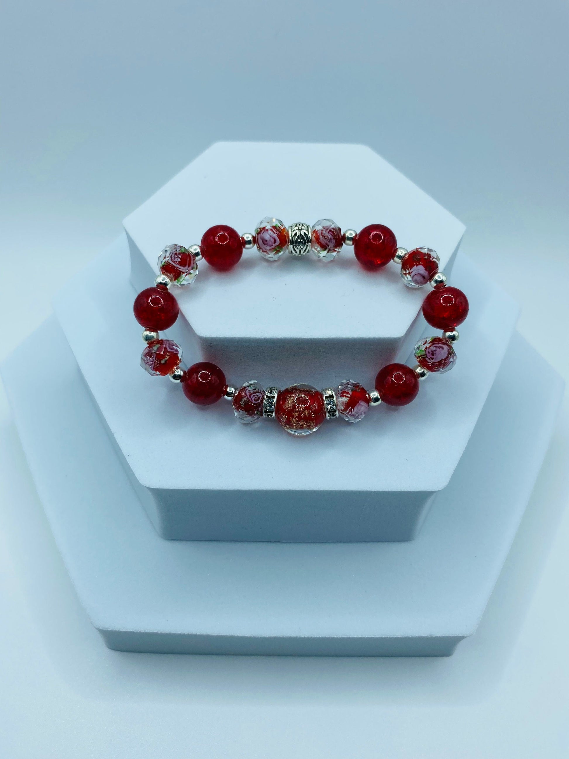 Add a pop of color to your ensemble with this stunning Red Bracelet featuring exquisite Lampwork Glass Beads, dazzling Glass Crystal Beads, and elegant Hematite Silver Beads. This statement jewelry piece is perfect for adding a touch of sophistication and style to any outfit. Handcrafted with care, this bracelet is sure to become a favorite in your jewelry collection. Great for both everyday wear and special occasions. This piece of Statement Jewelry will surely turn heads and add a touch of glamour to any ensemble.