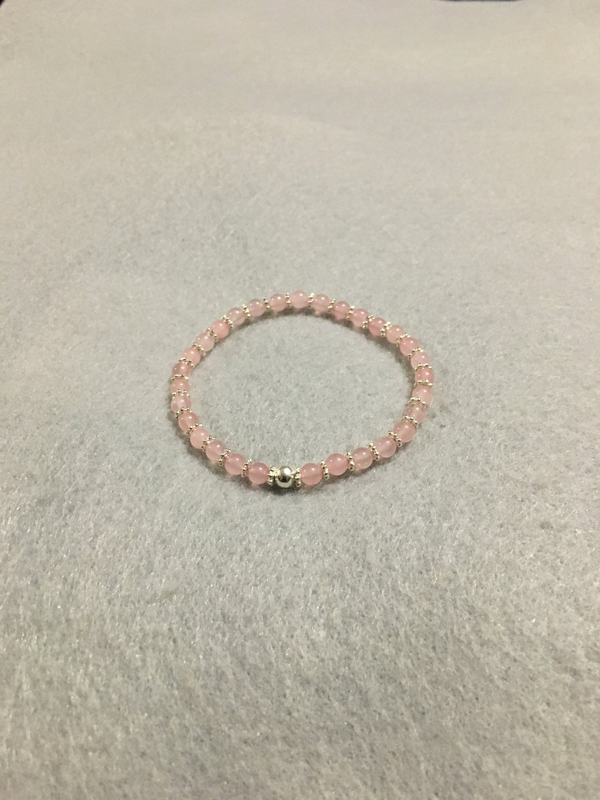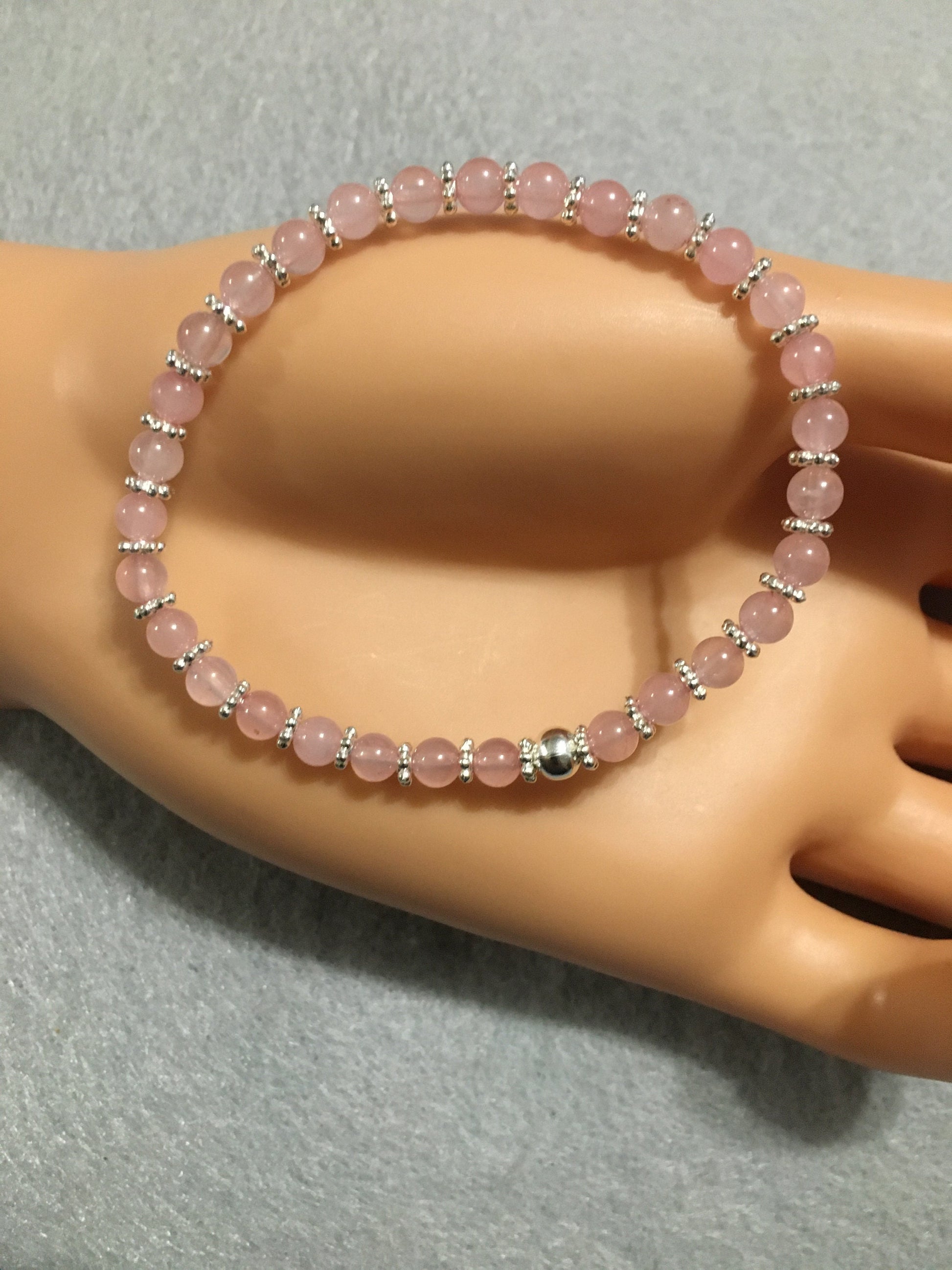 PRODUCT DETAILS - 4mm rose quartz gemstone beads - 4mm silver plated snowflake spacers - 4mm silver plated Hematite round bead - Strong, stretchy cord - Handmade in a clean and safe environment