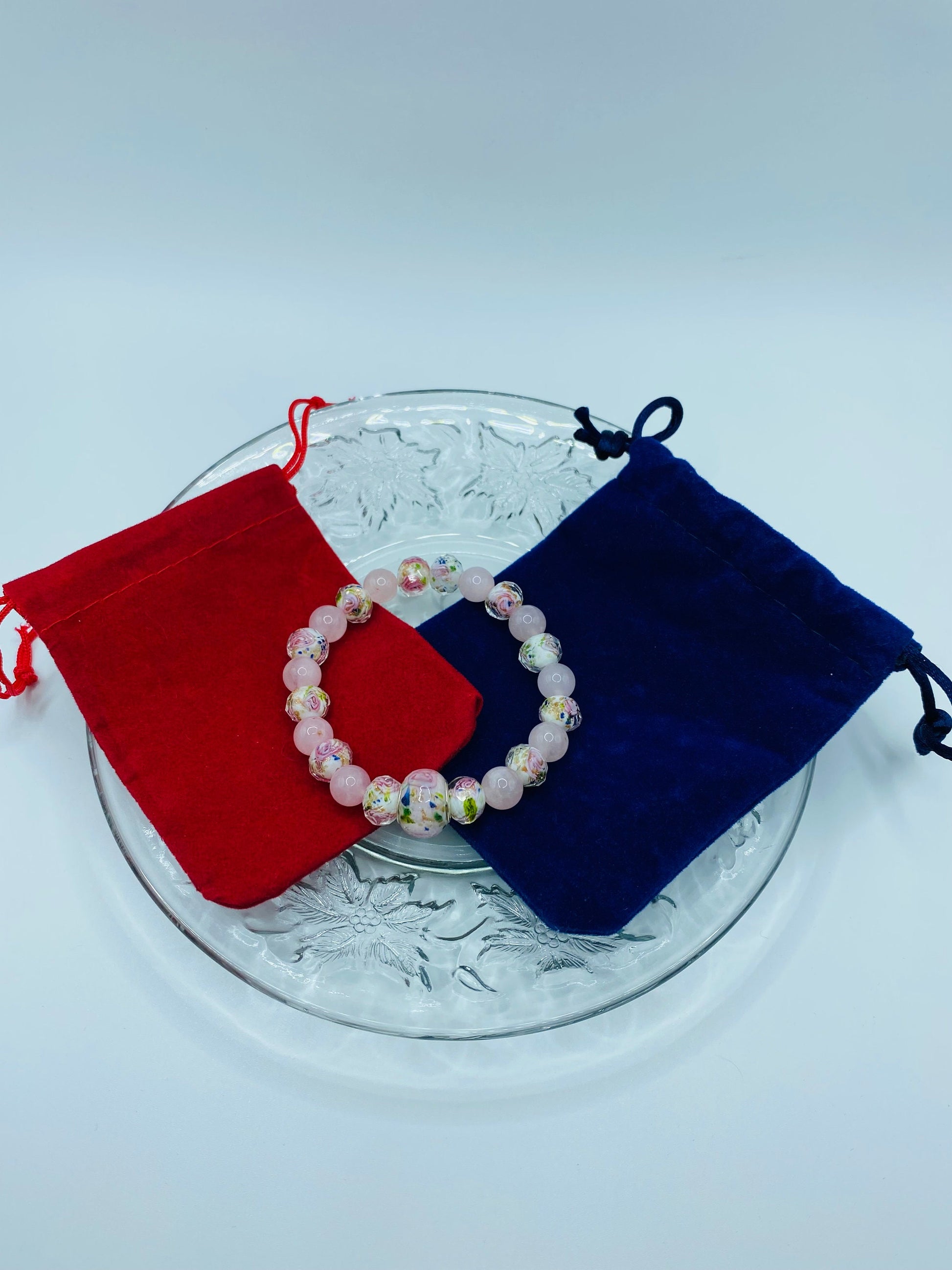 This stunning Rose Quartz Pink Jewelry Bracelet features exquisite Lampwork Glass Beads and vibrant Murano Glass Beads, adorned with delicate Glass Flowers. The natural beauty of the Rose Quartz combines with the intricate craftsmanship of the glass beads to create a one-of-a-kind piece that radiates elegance and charm. Perfect for adding a touch of femininity to any outfit, this bracelet is sure to become a cherished accessory in your jewelry collection.