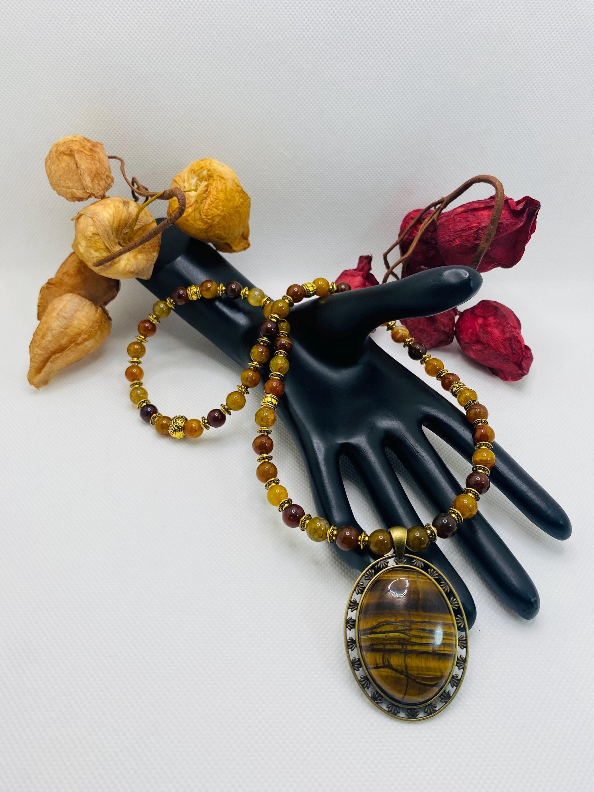 Tigers Eye & Dragon Vein Agate Necklace: Tibetan Style Gemstone Jewelry