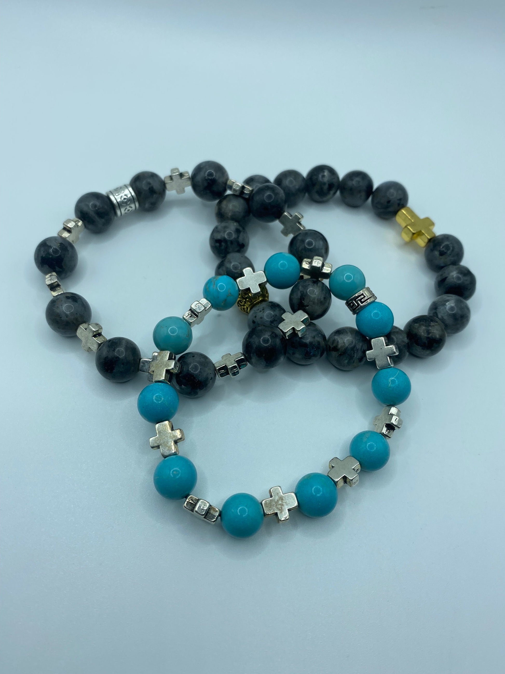 Adorn your wrist with this stunning Turquoise Bracelet Religious Jewelry featuring delicate Silver Cross Charms. This unique Protection Bracelet exudes a sense of faith and style, making it the perfect accessory for any outfit. Whether you're looking for a meaningful piece of Cross Bracelet or a gift for a loved one, this beautiful bracelet is sure to captivate hearts. Add a touch of spirituality to your ensemble with this exquisite piece. Perfect for everyday wear or special occasions, this Cross Bracelet makes a thoughtful gift for a loved one or a meaningful addition to your own jewelry collection.