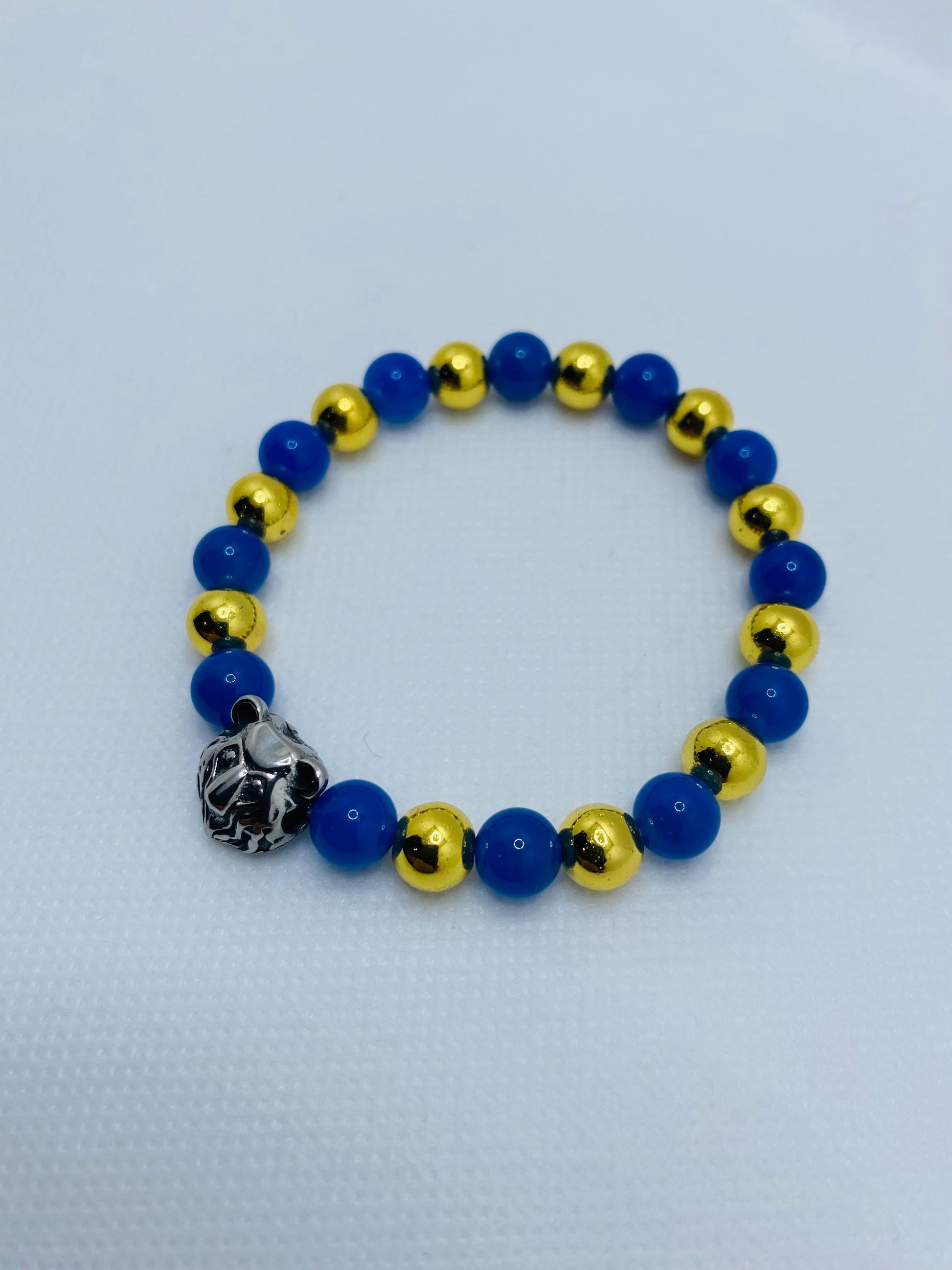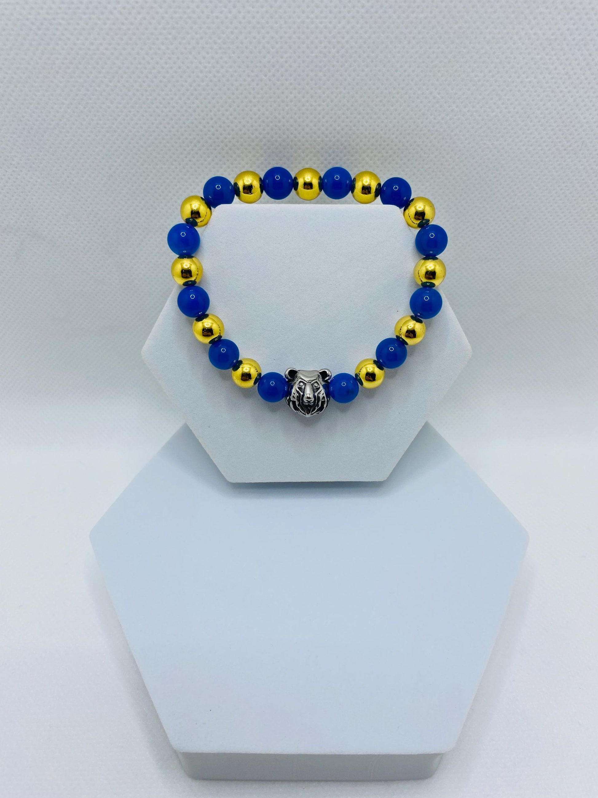 UCLA Bruins Bracelet: Blue Agate, Gold Hematite, Bear Charm