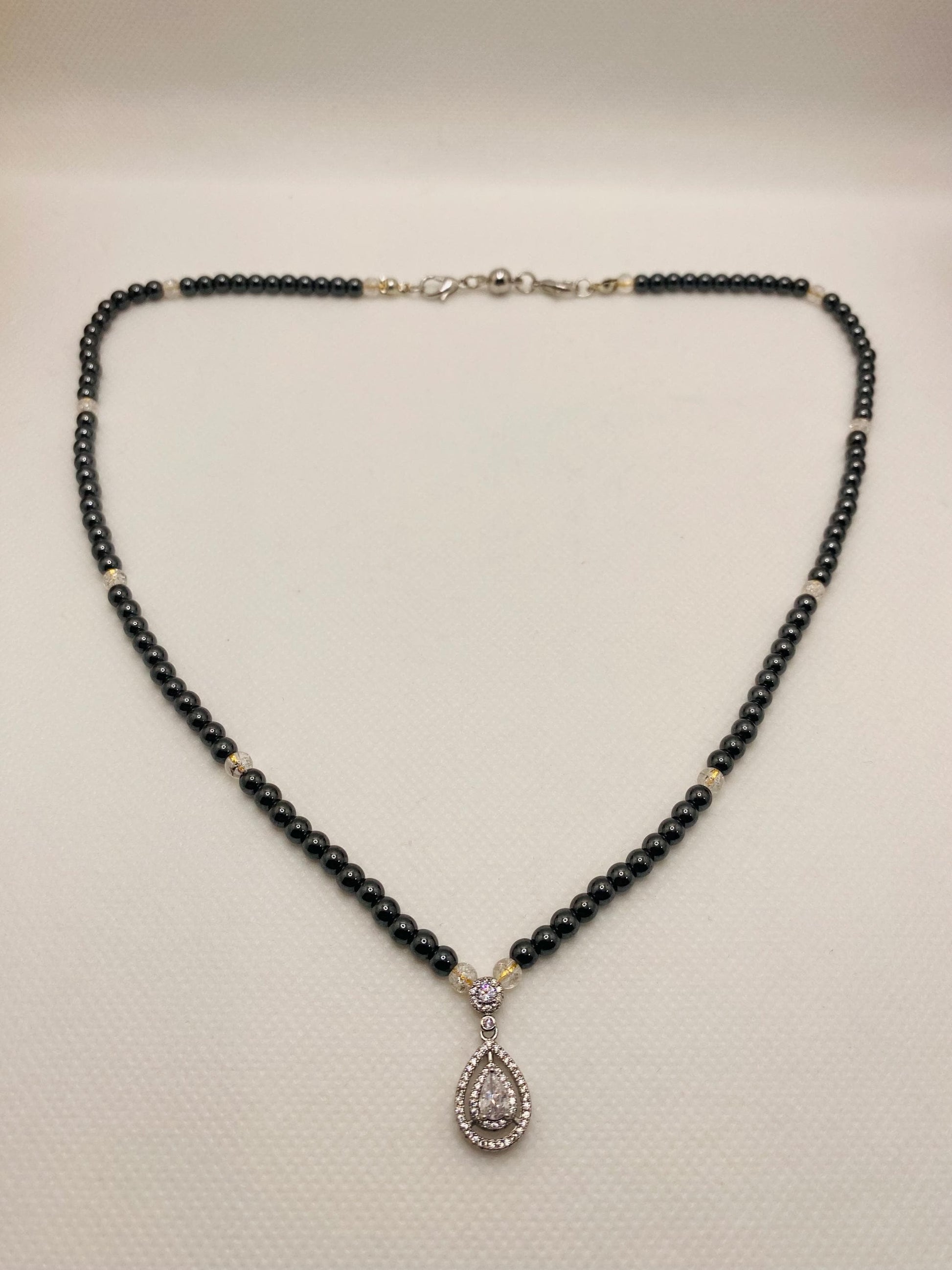 Elevate your accessory game with our stunning Handmade Women's Necklace, expertly crafted with 4mm AAA+ Grade Natural Black Hematite Gemstone Beads and a dazzling Zirconia Pendant. This unique piece is not just jewelry; it's a statement of elegance and individuality. The hematite beads offer a sleek, modern vibe, while the crystal-clear zirconia pendant adds a touch of sparkle that catches the eye. Perfect for any occasion, this necklace seamlessly transitions from casual outings to formal events. The harmonious blend of black hematite and crystal quartz gemstone beads creates a striking contrast, making it an ideal gift for her. Whether it’s a birthday, anniversary, or just because, she’ll cherish this thoughtful piece for years to come. Don’t miss out on owning this exquisite accessory that embodies both style and sentiment. Treat yourself or surprise someone special with a gift that radiates beauty and sophistication. Order yours today and let her shine!